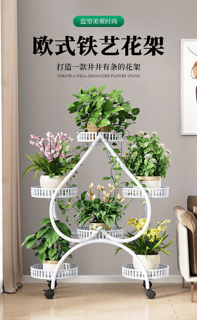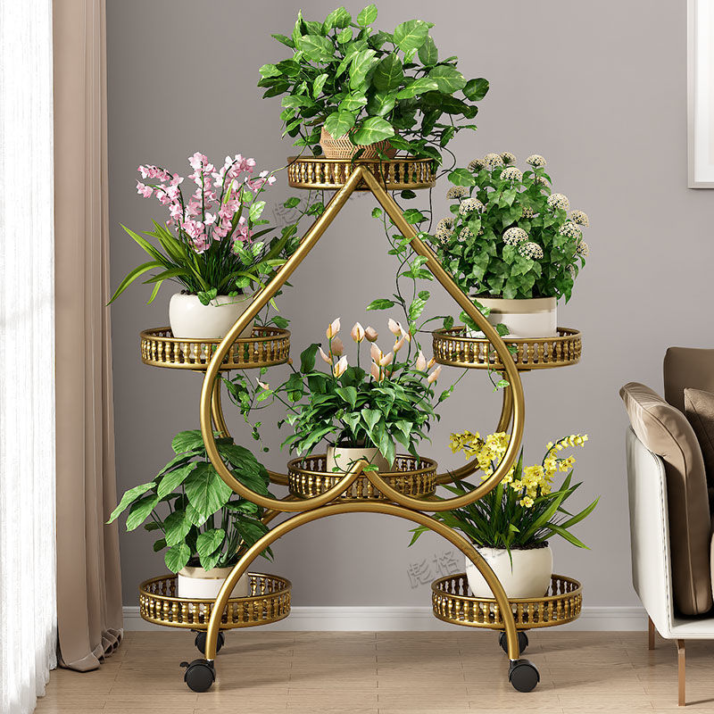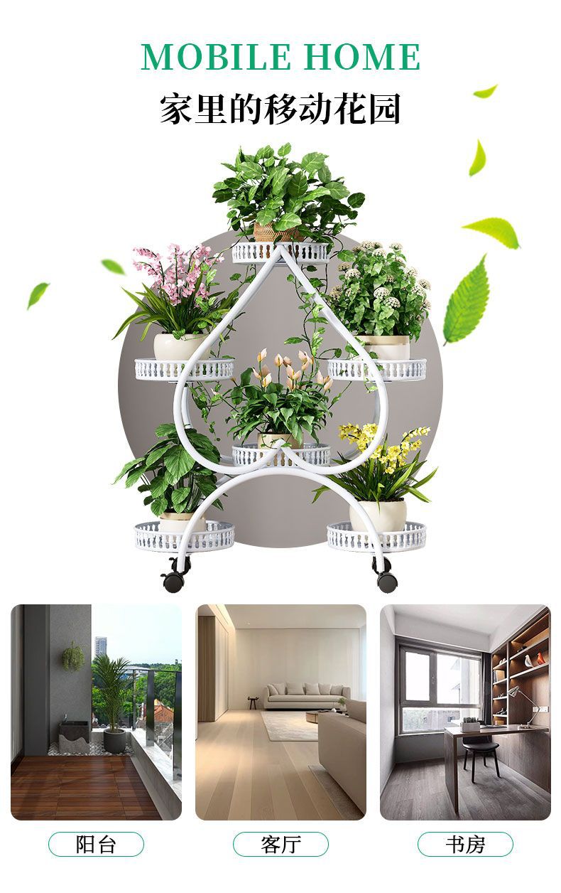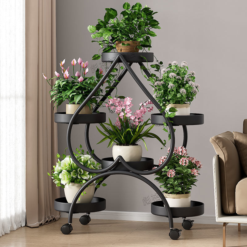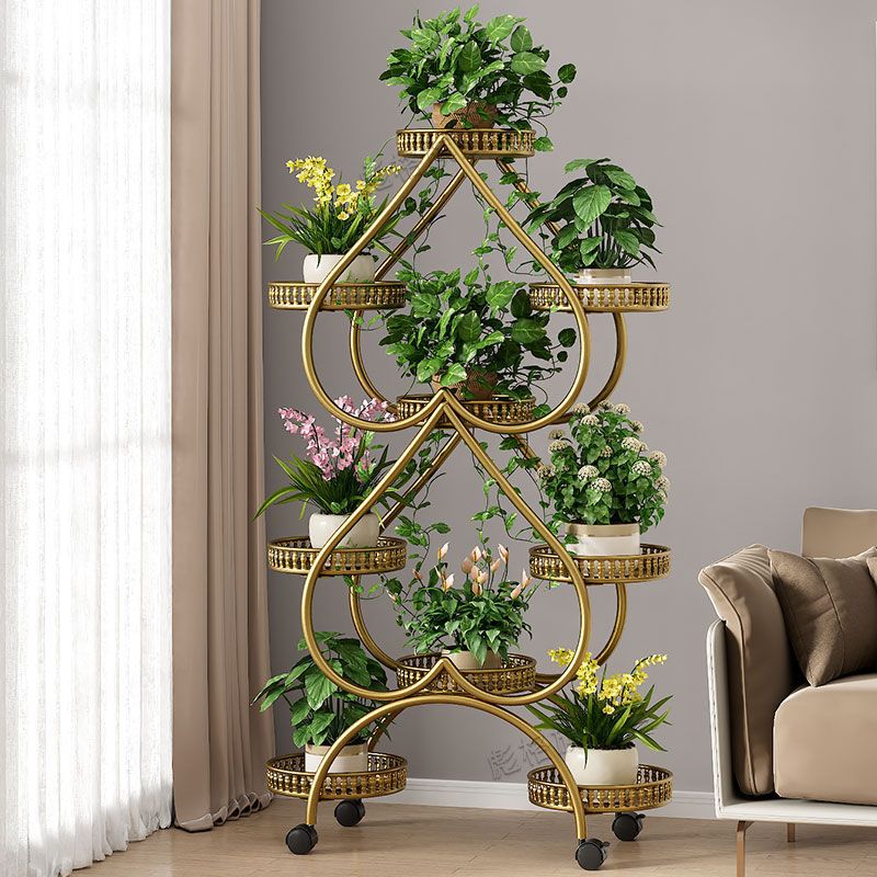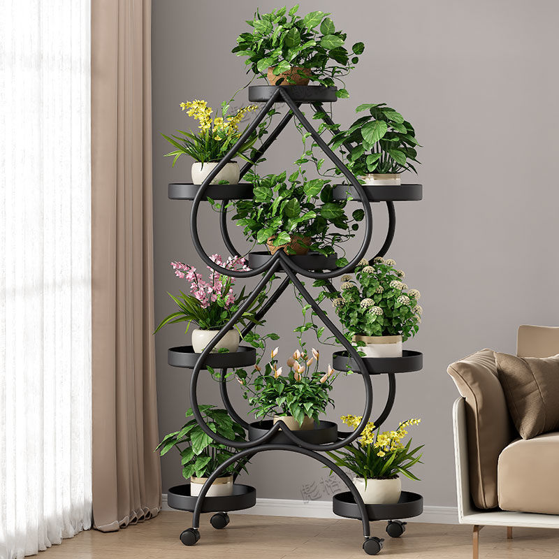 하트 모양의 꽃 랙 거실 바닥 서 철 멀티 레이어 휠 실내 녹색 꽃 냄비 랙 발코니 이동식 저장 랙