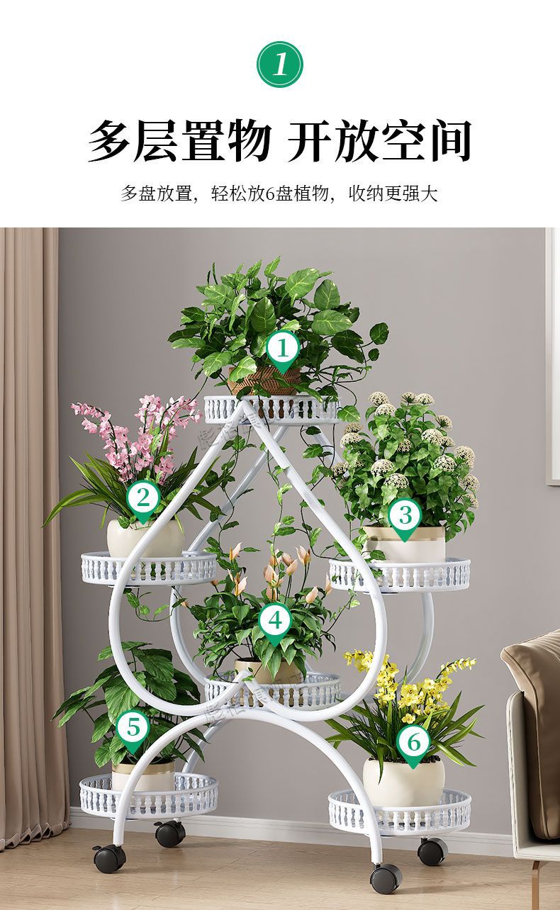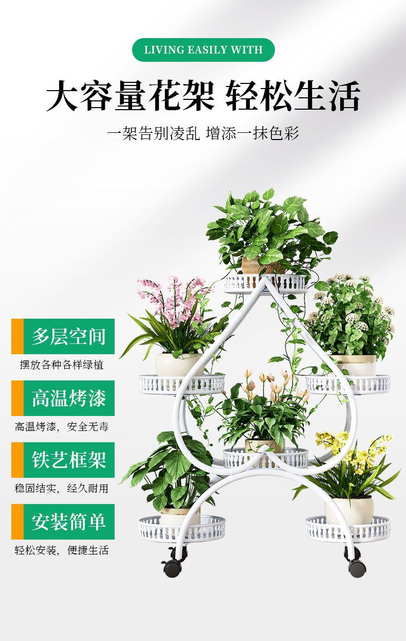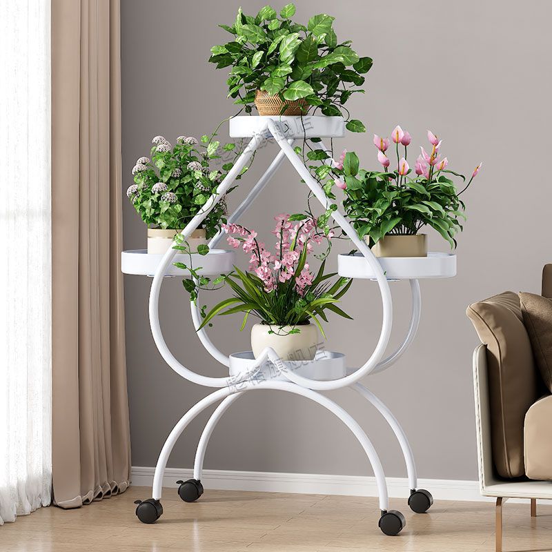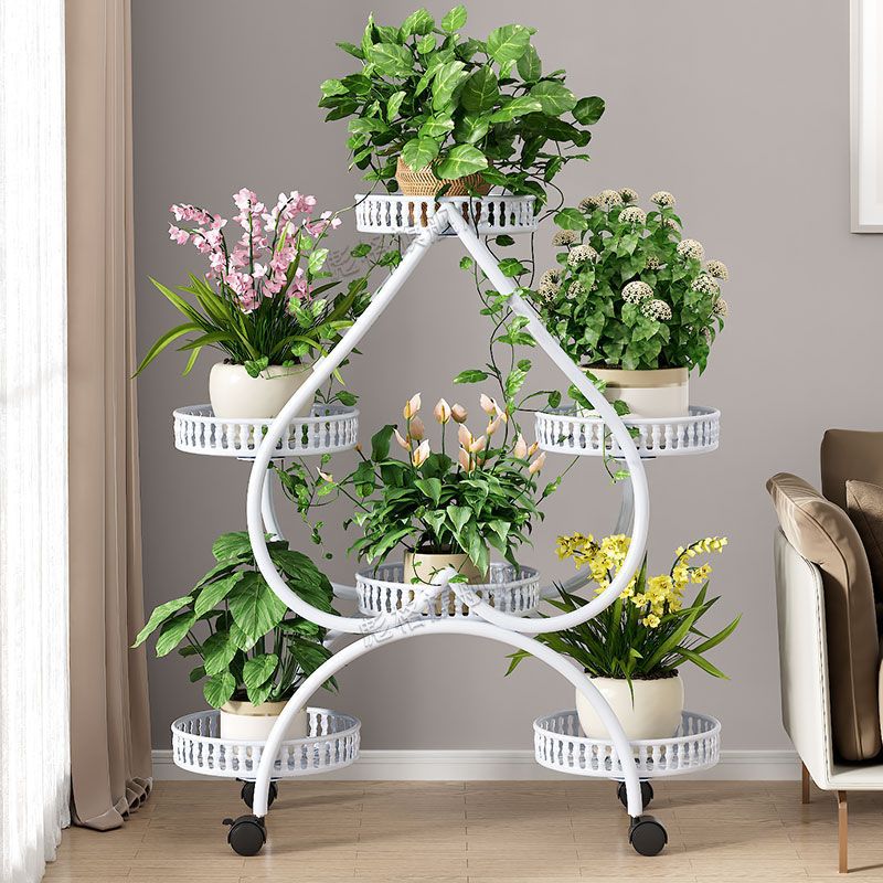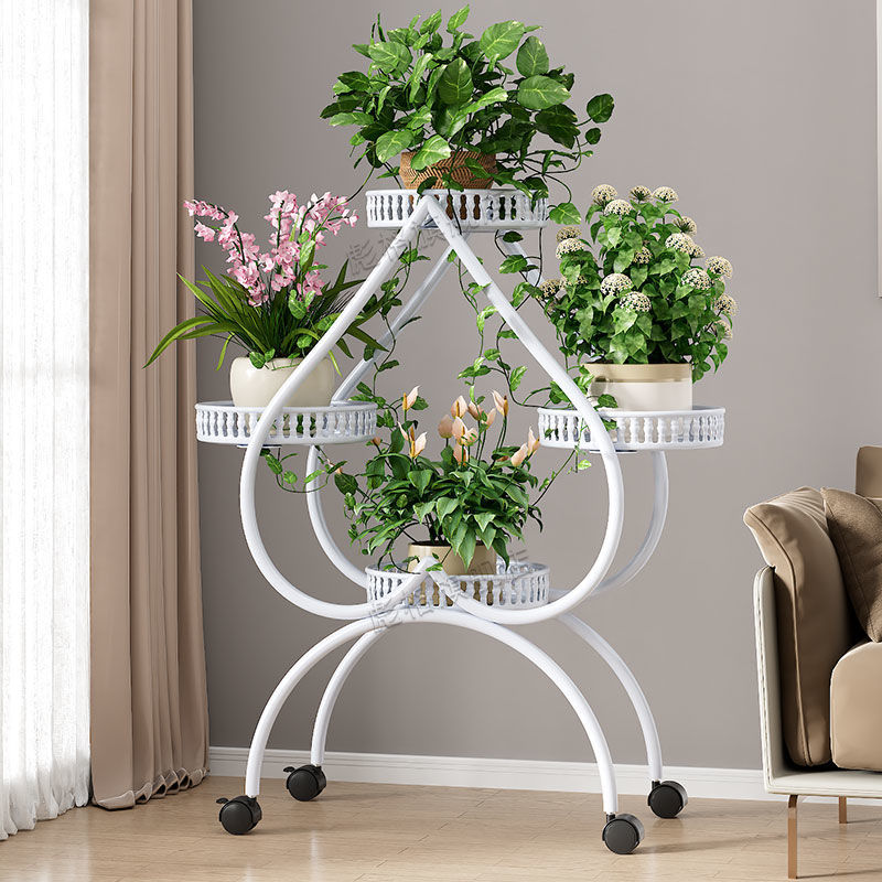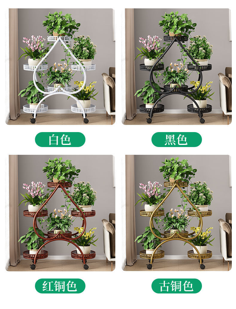 하트 모양의 꽃 랙 거실 바닥 서 철 멀티 레이어 휠 실내 녹색 꽃 냄비 랙 발코니 이동식 저장 랙