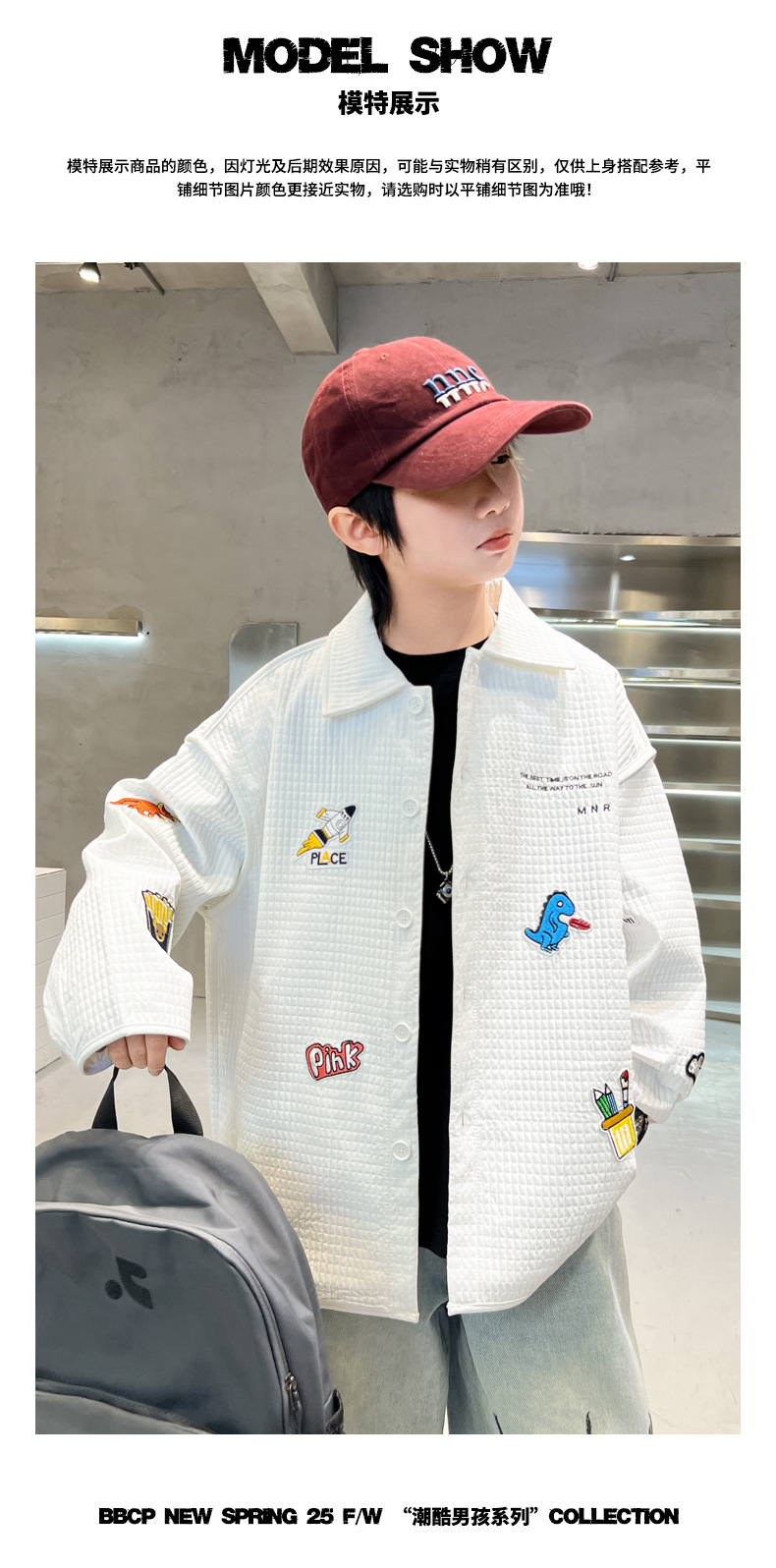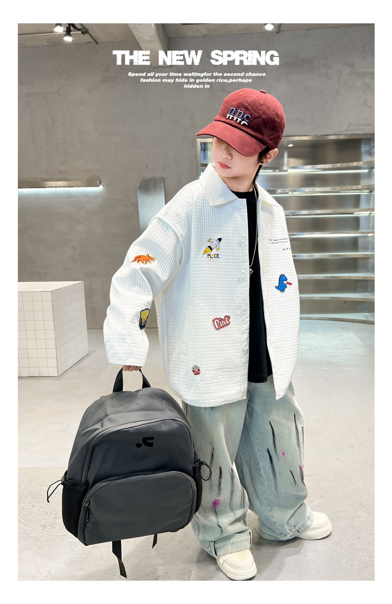소년 캐주얼 재킷 2025 새로운 도착 한국 스타일 긴 소매 랩 만화 자수 봄과 가을 유행 스타일 셔츠스토어 가기