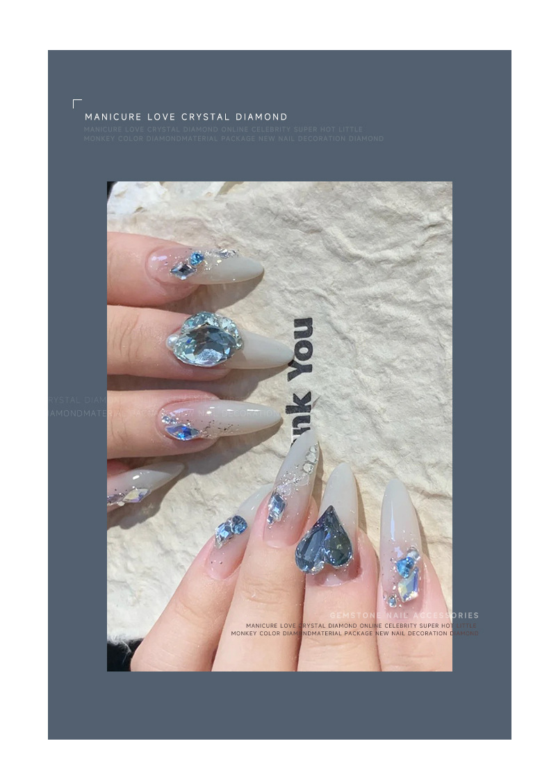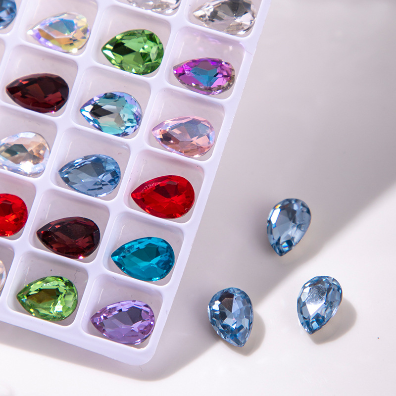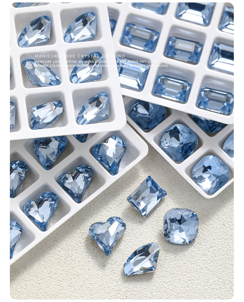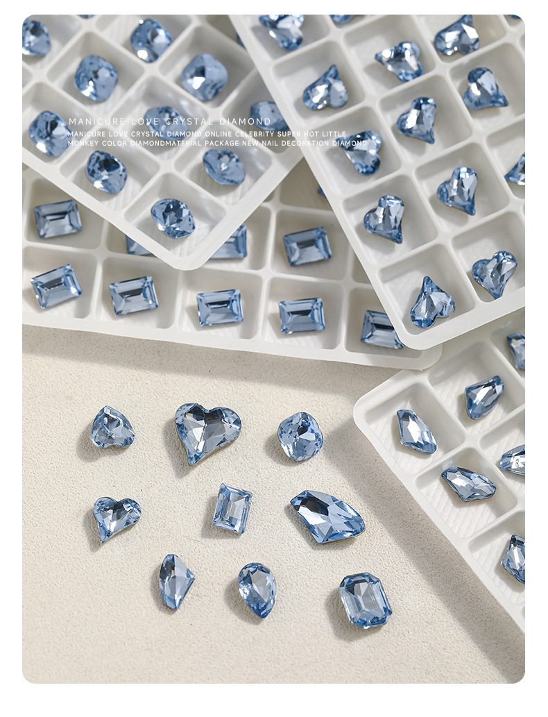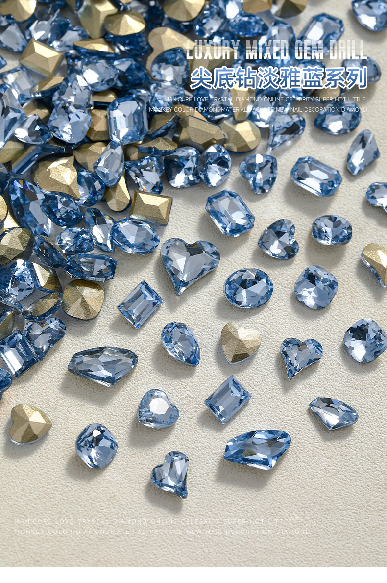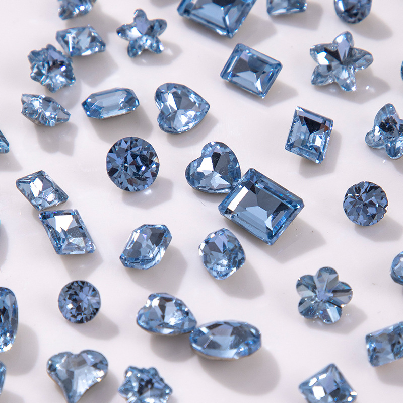 우아한 블루 네일 아트 보석 도매 그물 빨간 네일 드릴 라이트 블루 뾰족한 바닥 색상 모양의 크리스탈 파일 드릴 장식 유형스토어 가기