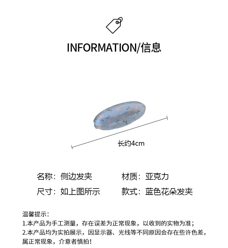신선한 작은 꽃 크림색 타원형 작은 머리핀 봄 필수 사이드 클립 고급 달콤한 아크릴스토어 가기