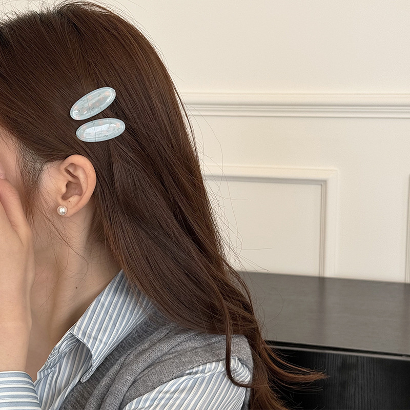 신선한 작은 꽃 크림색 타원형 작은 머리핀 봄 필수 사이드 클립 고급 달콤한 아크릴