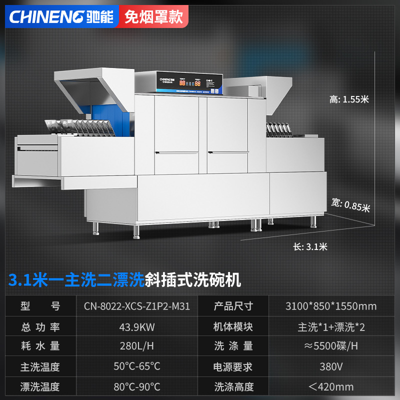 Chineng 상업용 대형 연기 없는 후드 식기 세척기 고온 건조 만능 청소 및 소독 열주기 살균 롱 드래곤