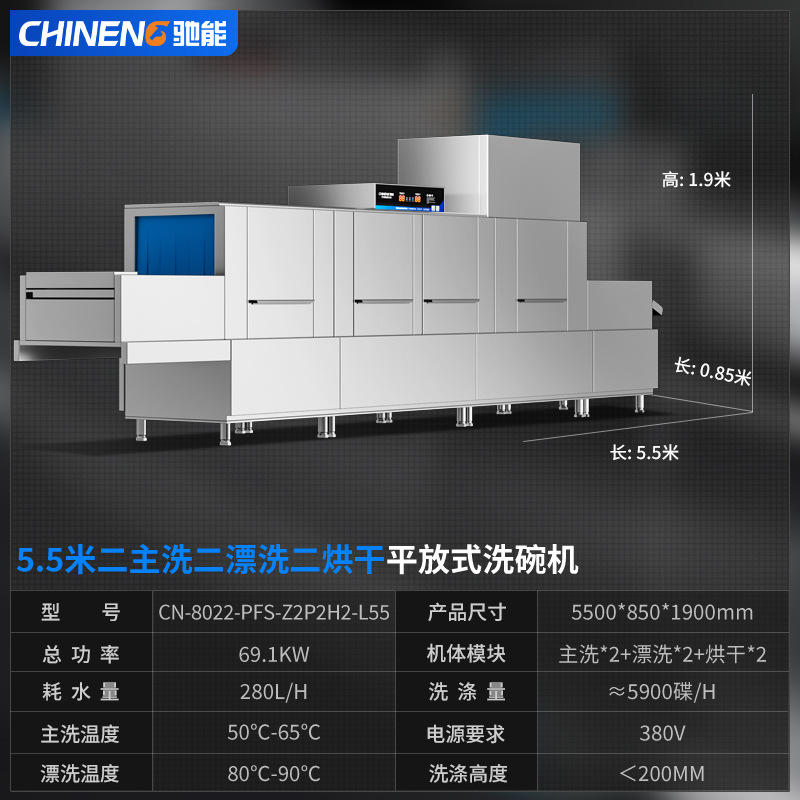 • 일반 모델 - 5.7m 주 세척, 2 헹굼, 2 건조, 평면 식기세척기