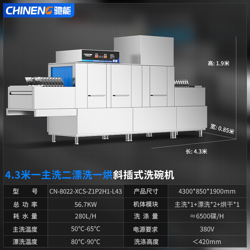 • 일반 모델 - 4.2m 메인 세척, 2개의 린스, 1개의 건조, 플랫탑 식기세척기