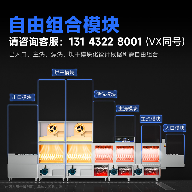 • 일반 모델 - 3.5m 메인 세척, 1개의 헹굼, 1개의 건조, 평면 식기세척기