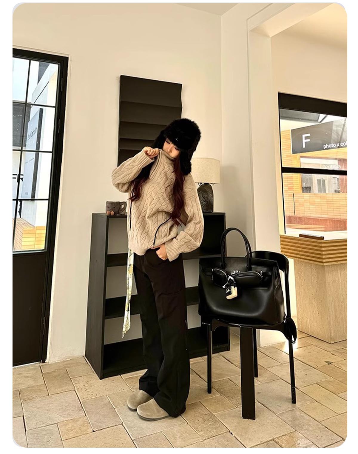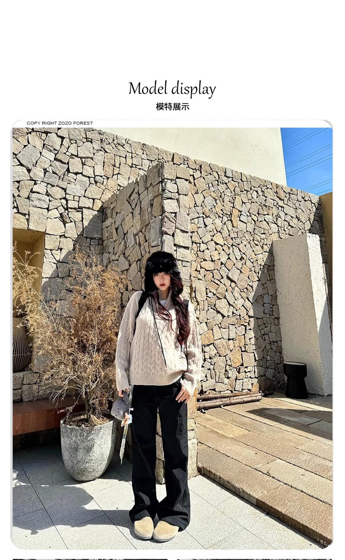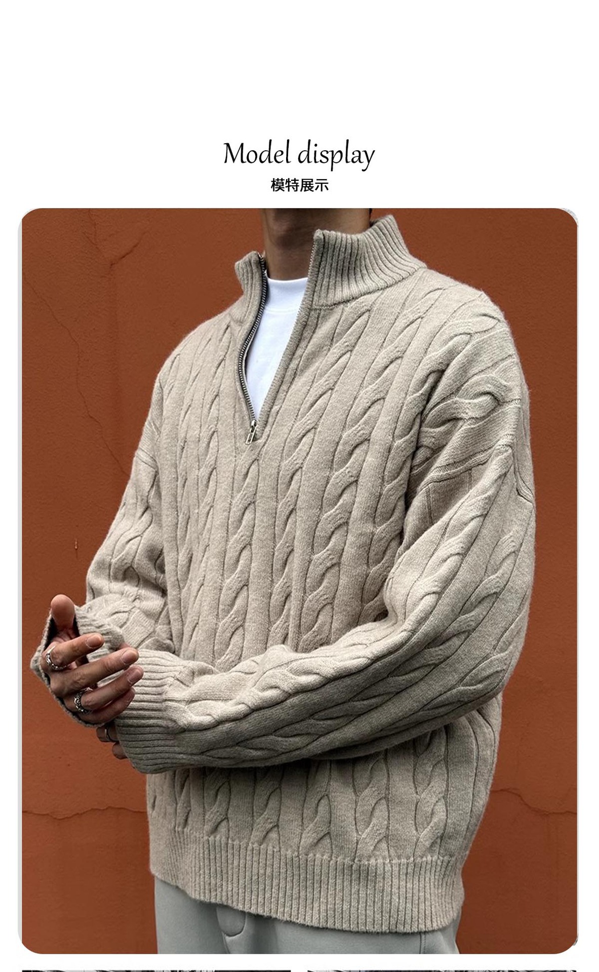 [CSMY] ZOZOFOREST "양각 면" 승마 대마 패턴 두꺼운 바늘 영국 반 지퍼 스웨터
