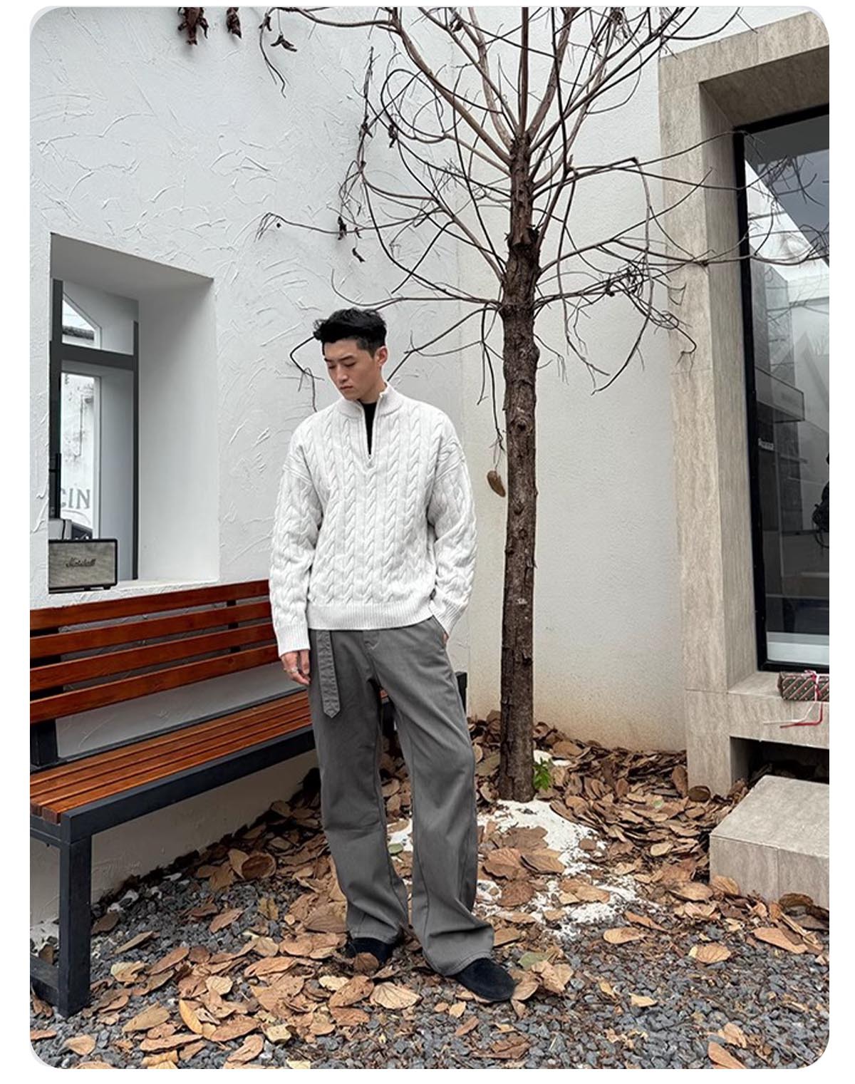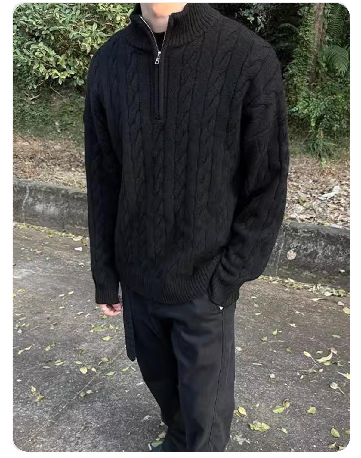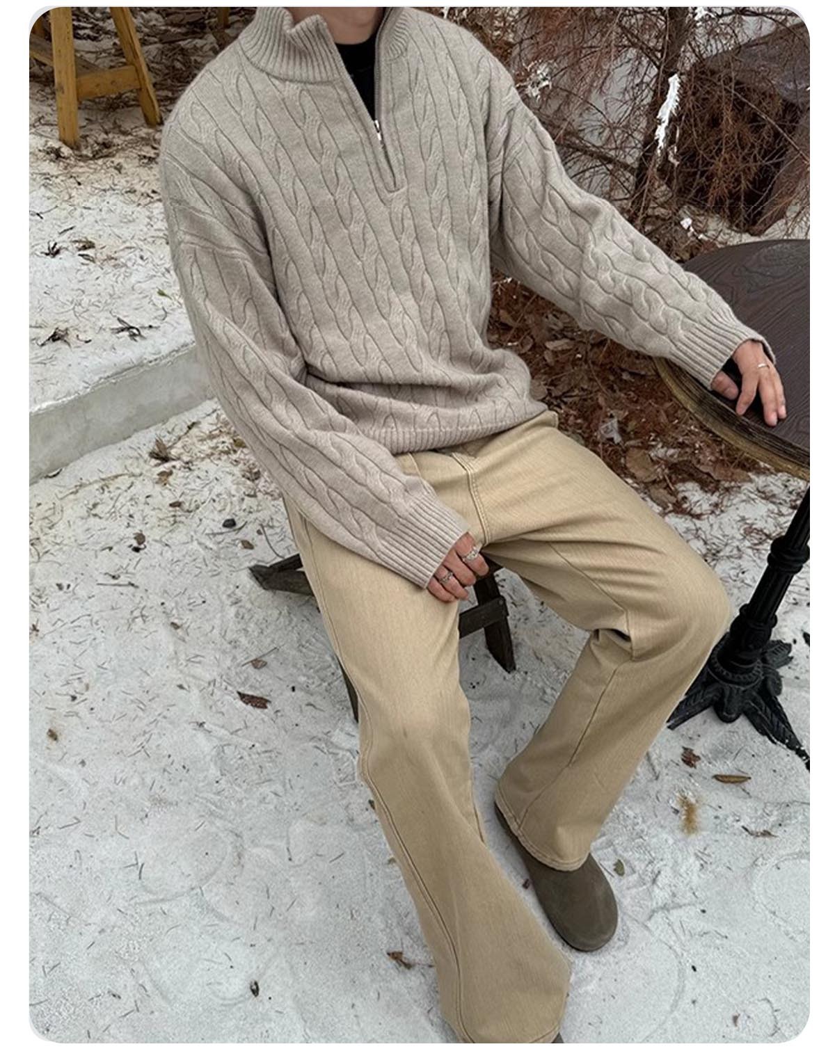 [CSMY] ZOZOFOREST "양각 면" 승마 대마 패턴 두꺼운 바늘 영국 반 지퍼 스웨터스토어 가기