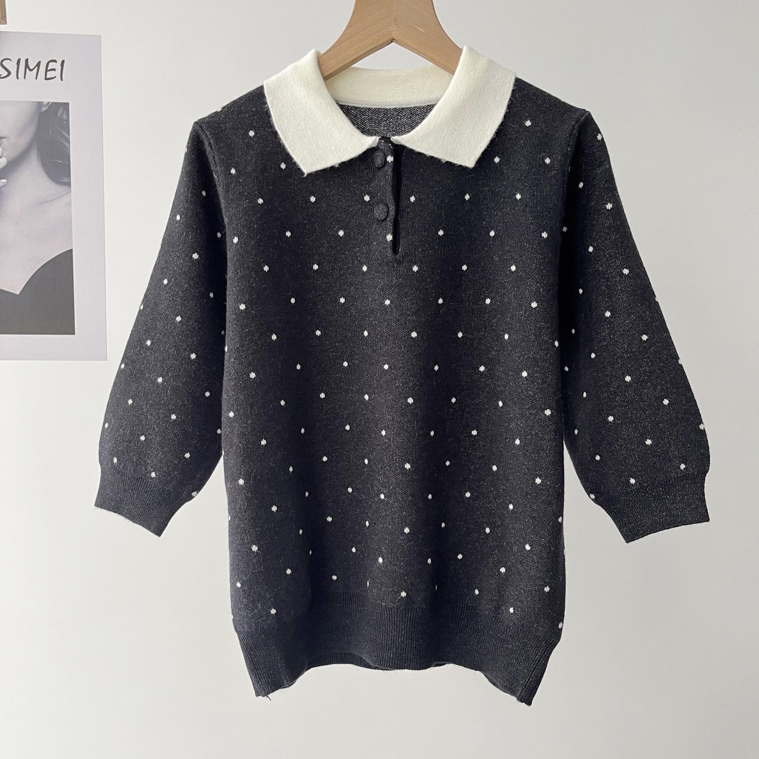 재고 Xiaohefeng 봄과 여름 새로운 통근 아름다운 웨이브 포인트 터틀넥 올 매치 그레이 스웨터 여자 스웨터 탑스토어 가기