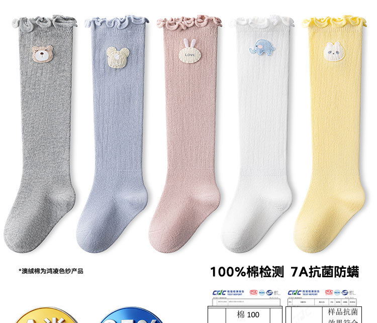 신생아 남녀 아기 0-3세 A급 면 봄가을 무봉제 루즈핏 귀꽃무늬 롱삭스스토어 가기