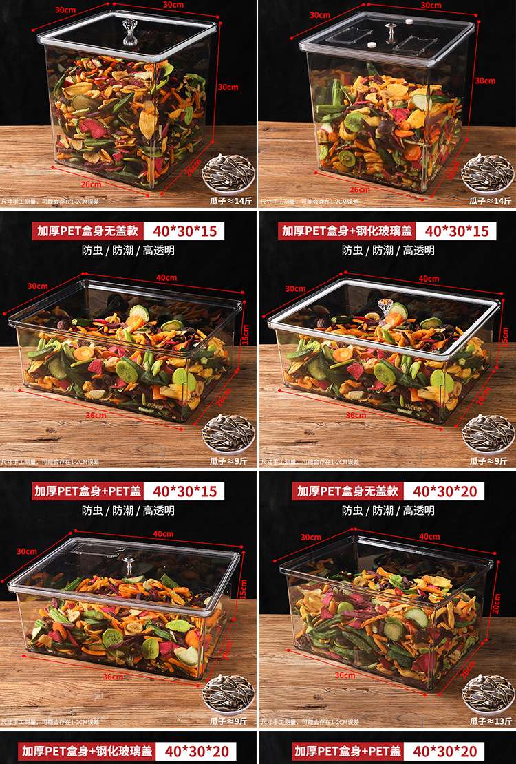 아크릴 밀봉 상자 슈퍼마켓 대량 식품 상자 방진 간식 건조한 과일 상자 밀봉 상자 상자 투명한 두껍게스토어 가기