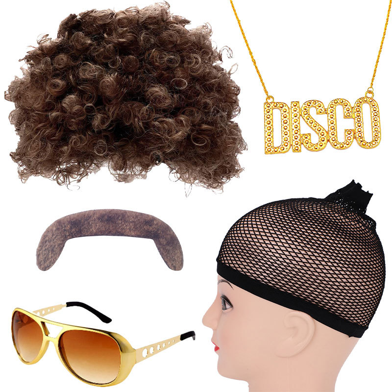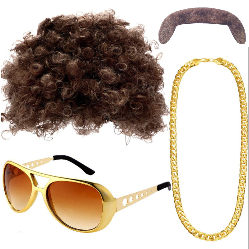 ✅70 년대 파티 할로윈 소품 코스프레 엘비스 스타일링 댄스 파티 안경 가발 사진스토어 가기