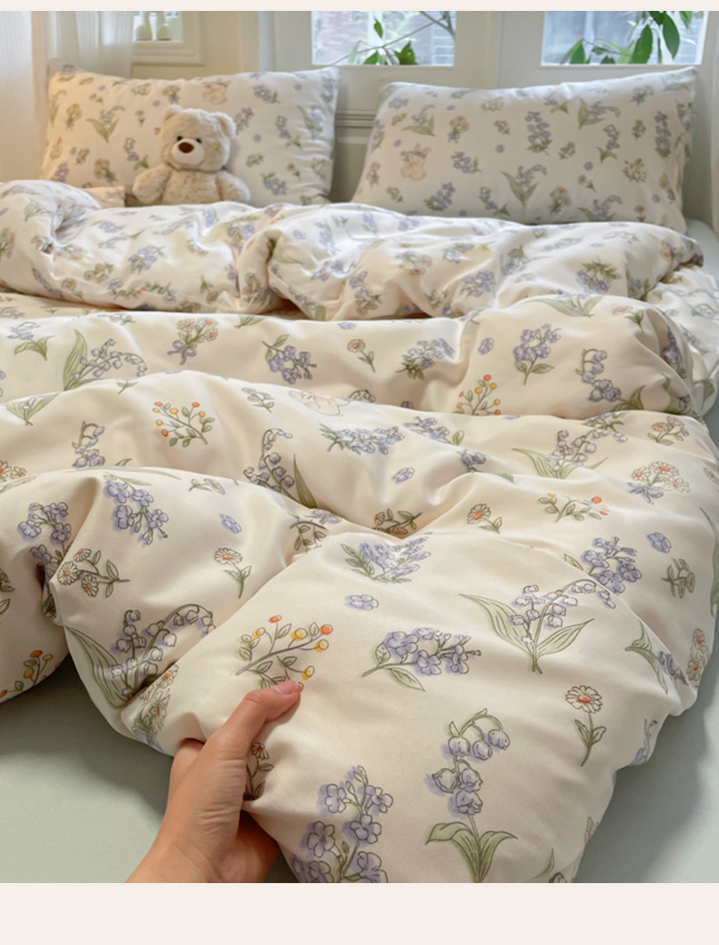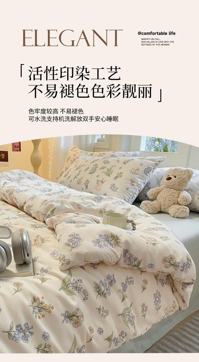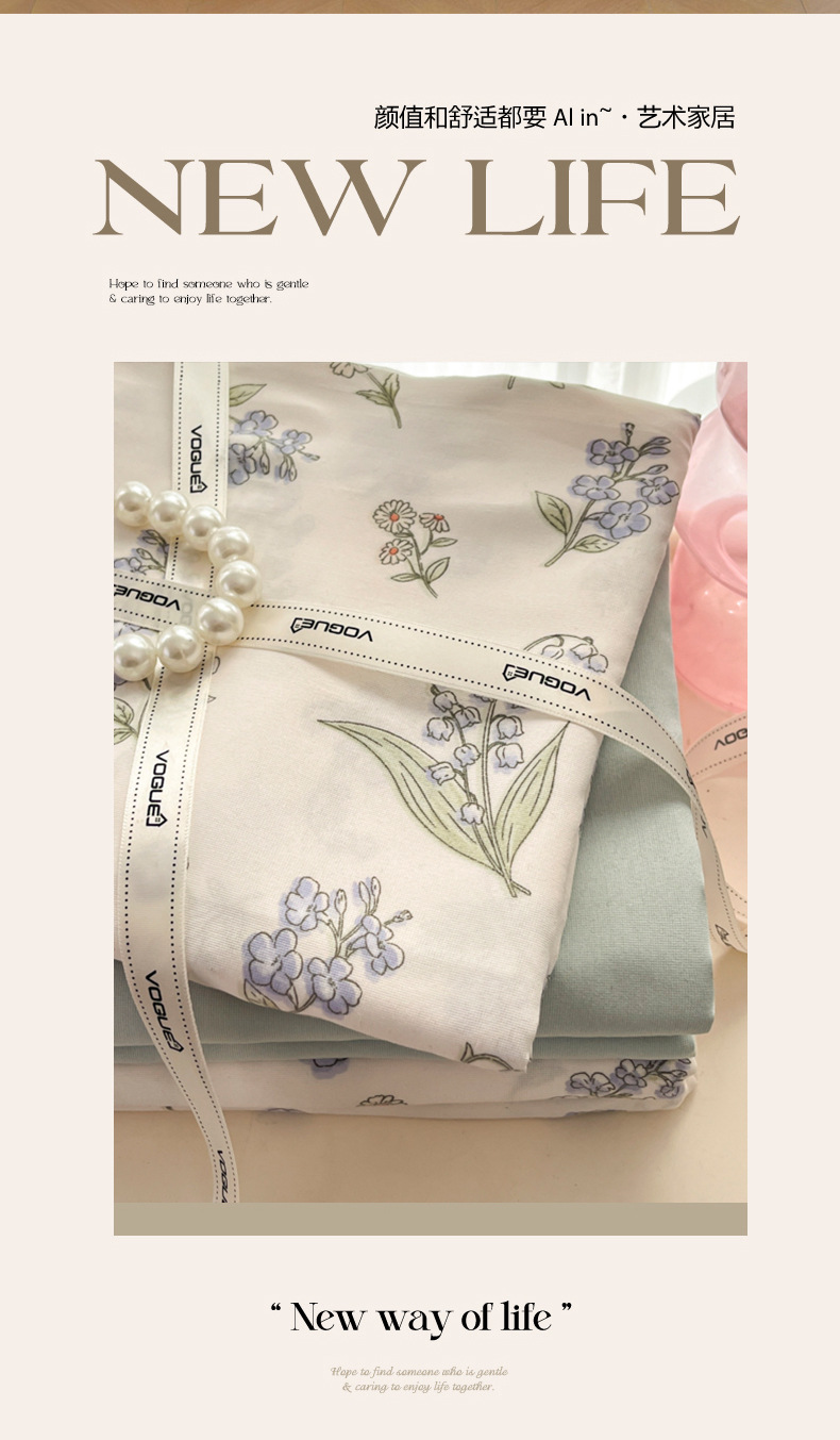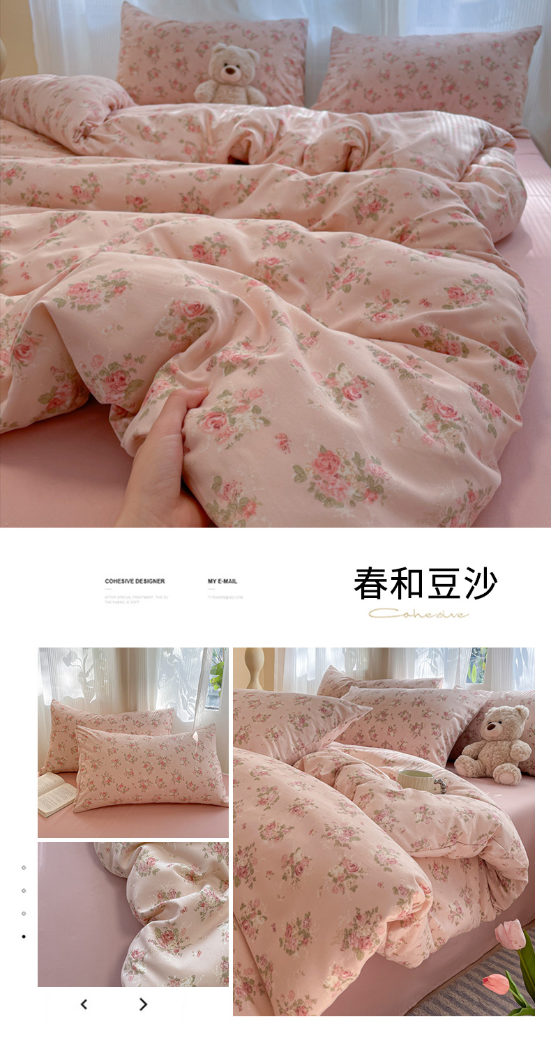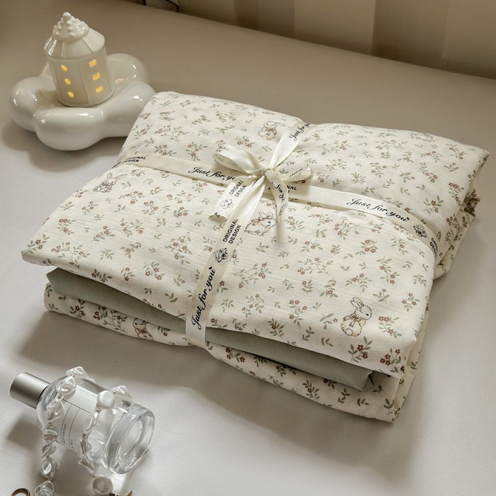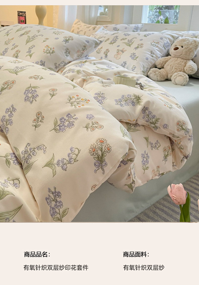 모성 및 유아 클래스 A 슈퍼 소프트 100 니트 코튼 에어로빅 더블 레이어 꽃 신선한 퀼트 커버 4 피스 기숙사 침대 시트 3 피스 세트