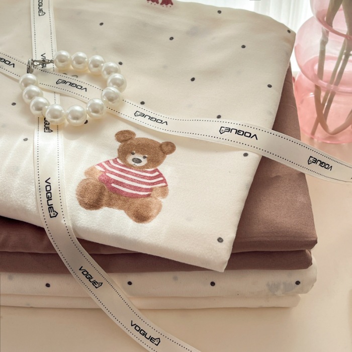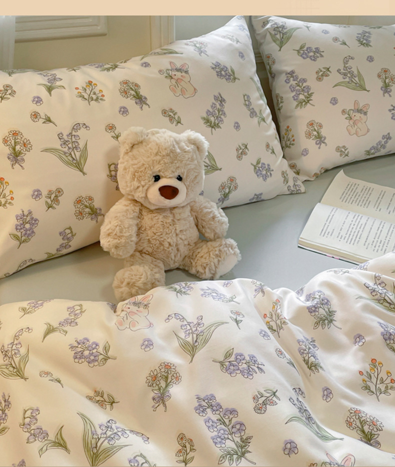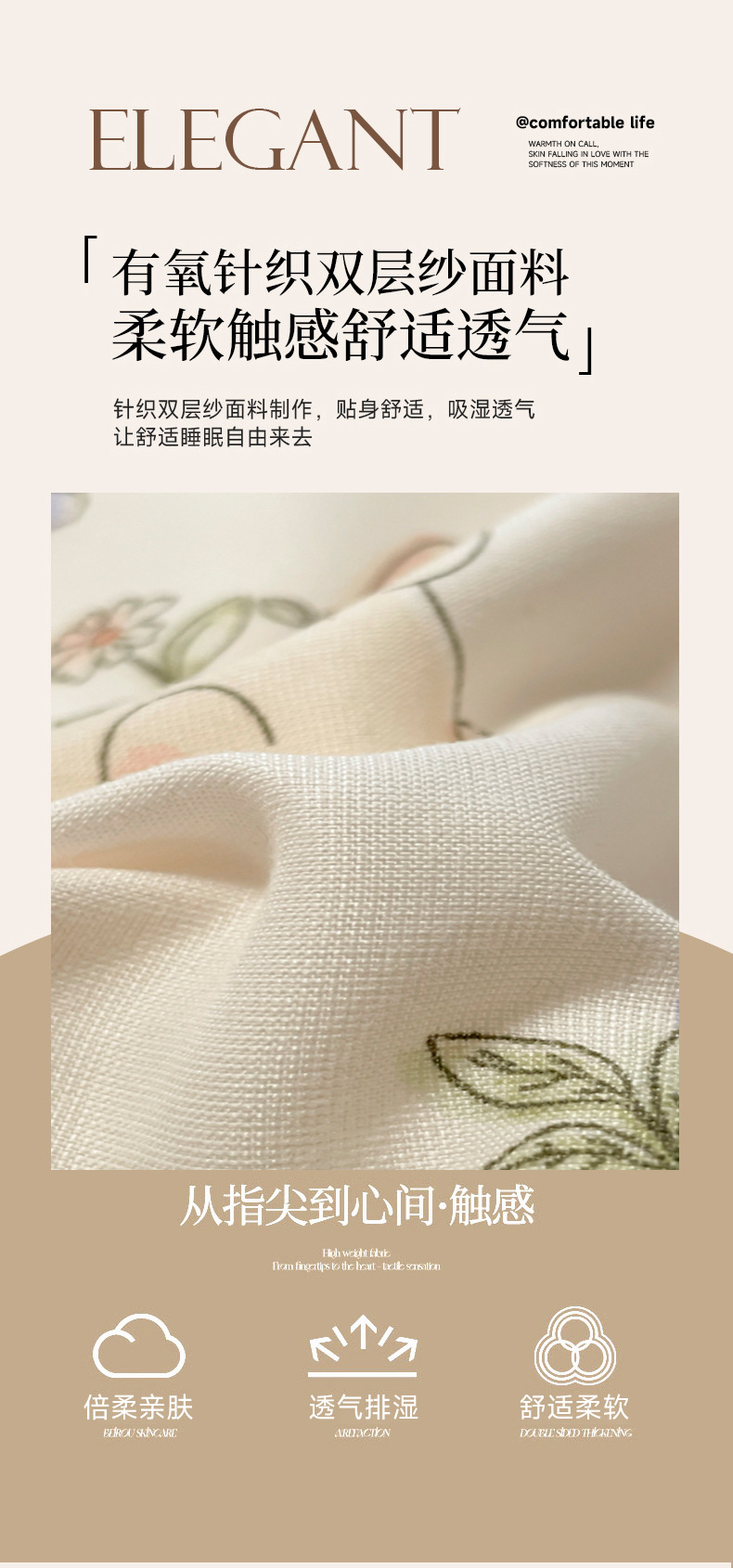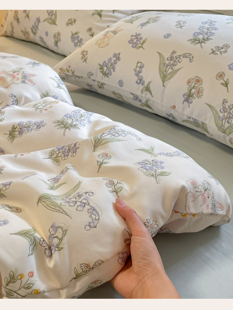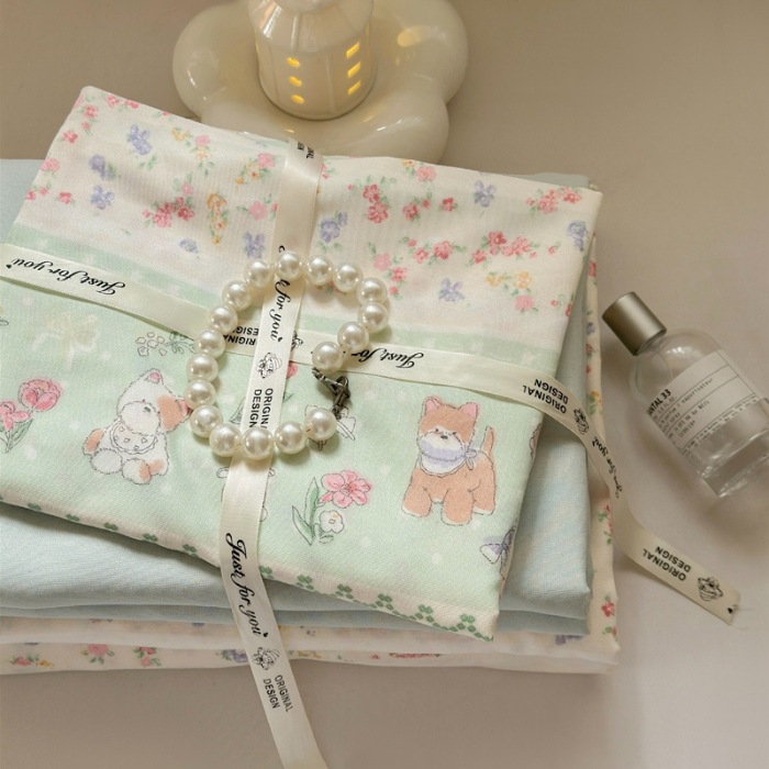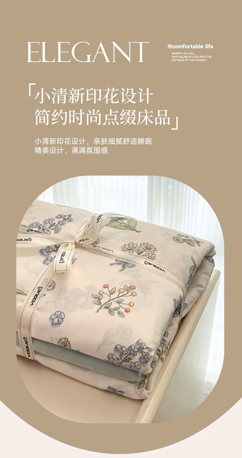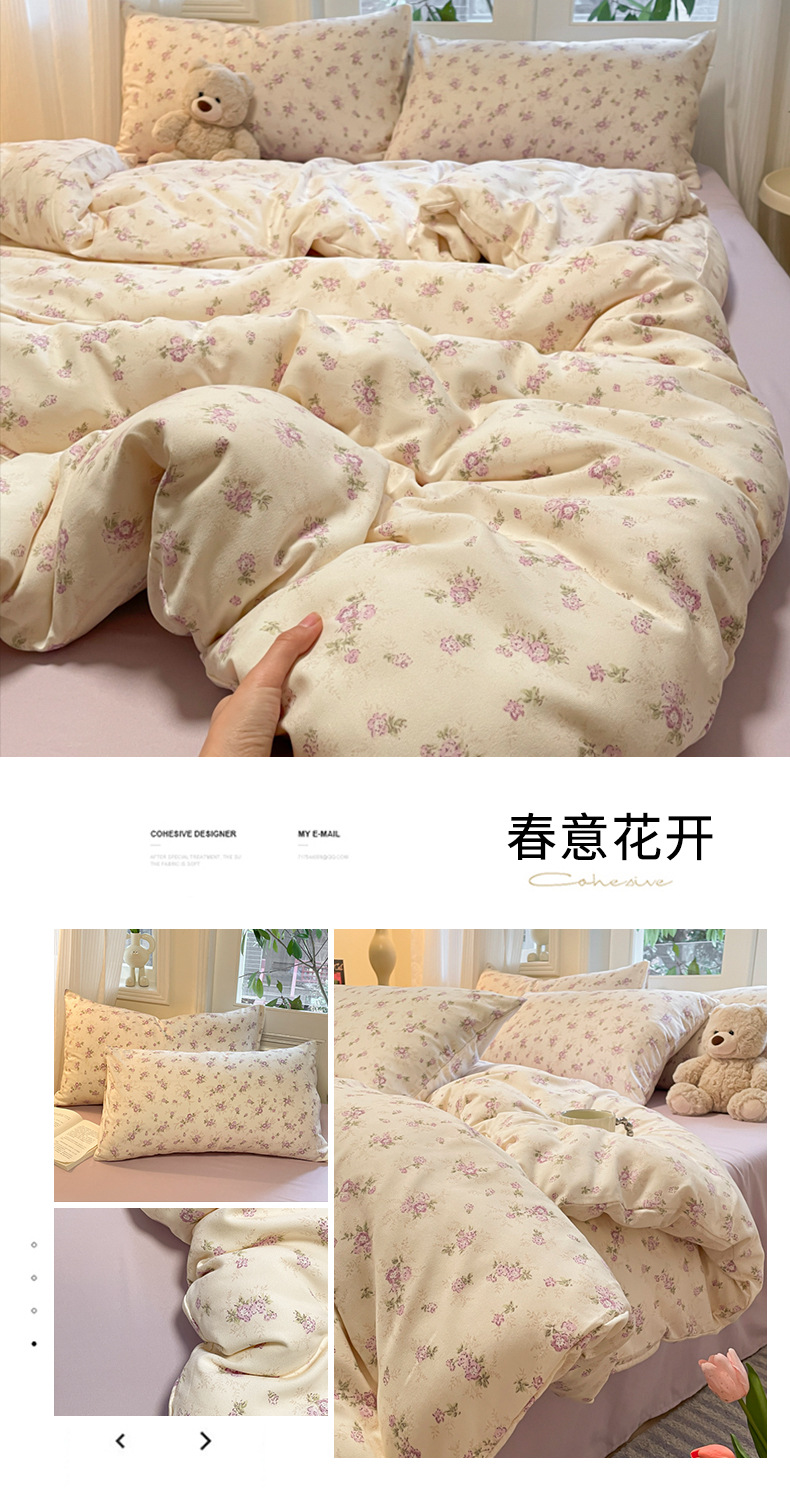모성 및 유아 클래스 A 슈퍼 소프트 100 니트 코튼 에어로빅 더블 레이어 꽃 신선한 퀼트 커버 4 피스 기숙사 침대 시트 3 피스 세트