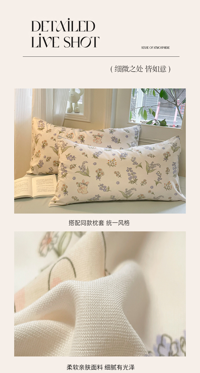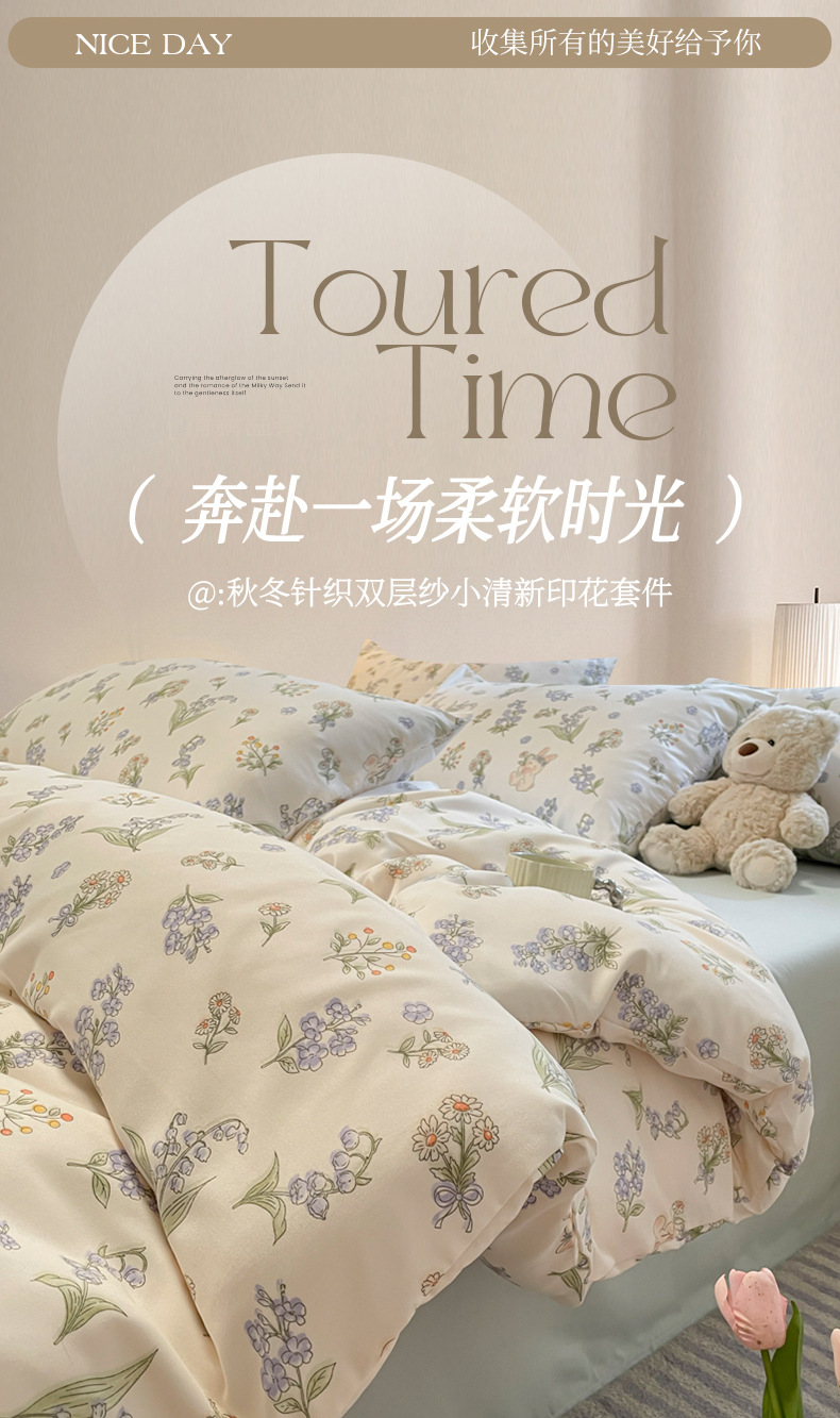 모성 및 유아 클래스 A 슈퍼 소프트 100 니트 코튼 에어로빅 더블 레이어 꽃 신선한 퀼트 커버 4 피스 기숙사 침대 시트 3 피스 세트스토어 가기
