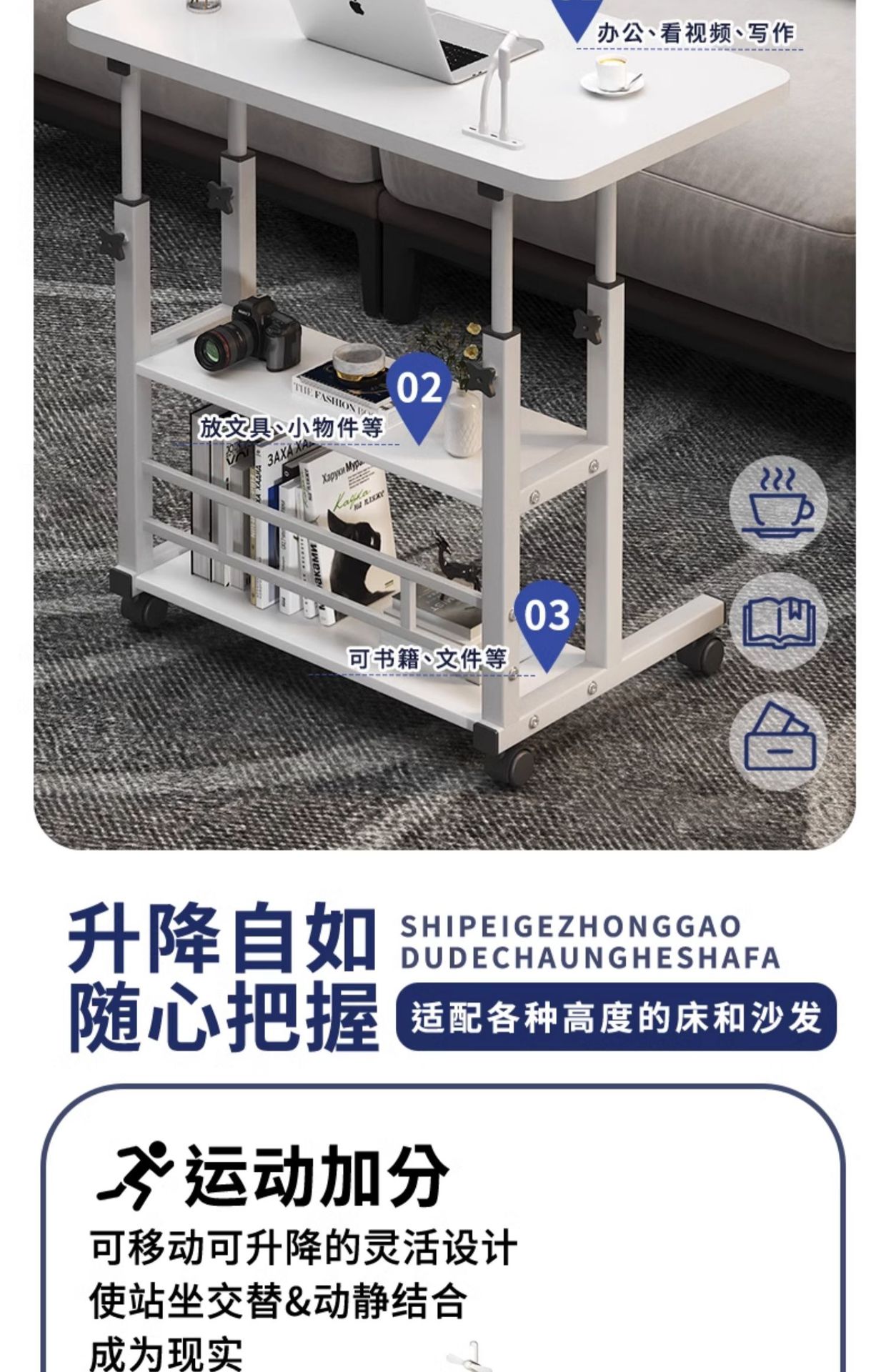 간단한 침대 옆 테이블 리프팅 테이블 다기능 리프팅 및 높이 드는 침대 옆 작은 테이블 보드 노트북 랙 침대스토어 가기