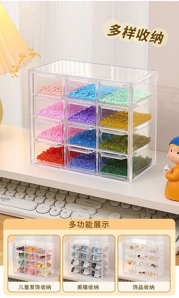 구슬 보관 서랍 유리 크리스탈 느슨한 구슬 캐비닛 보석 구획 투명 데스크탑 수제 재료 상자 무료 배송