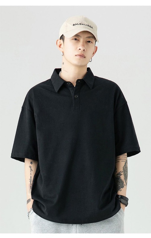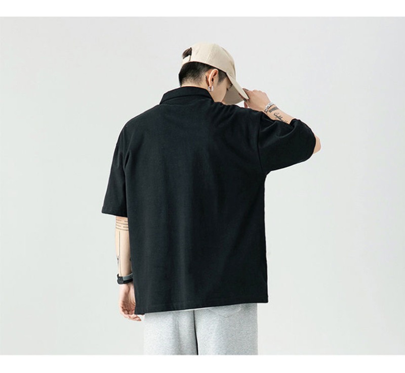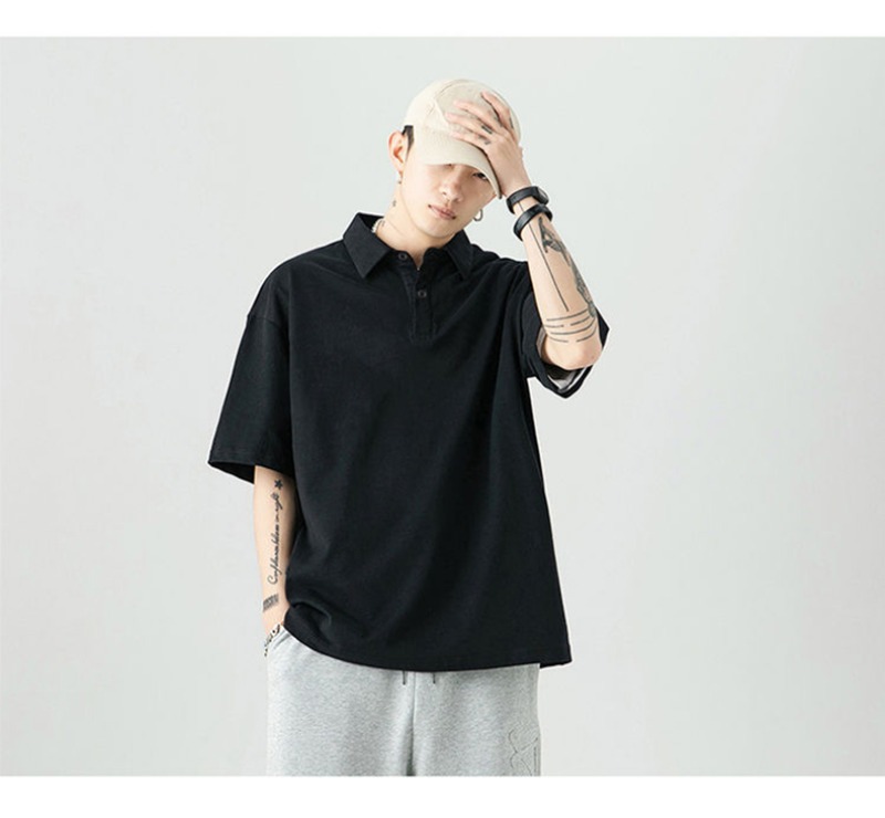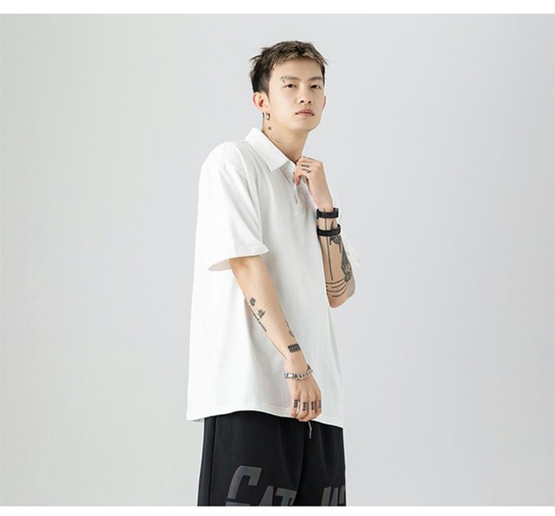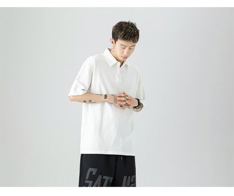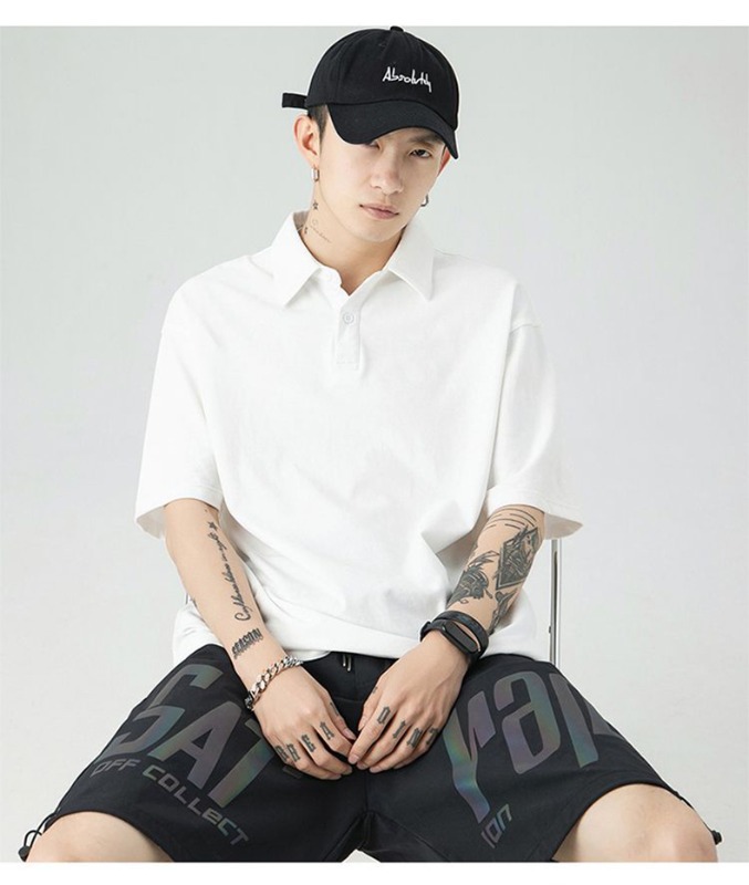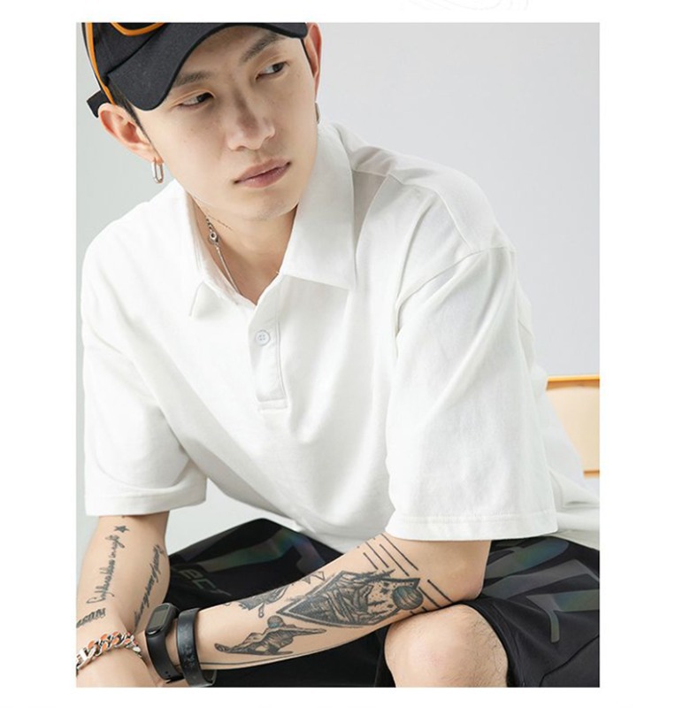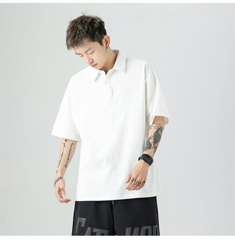 여름 폴로 셔츠 남성용 240gtc 코튼 루즈 솔리드 컬러 옷깃 반팔 폴로 셔츠 화이트 스웨터스토어 가기