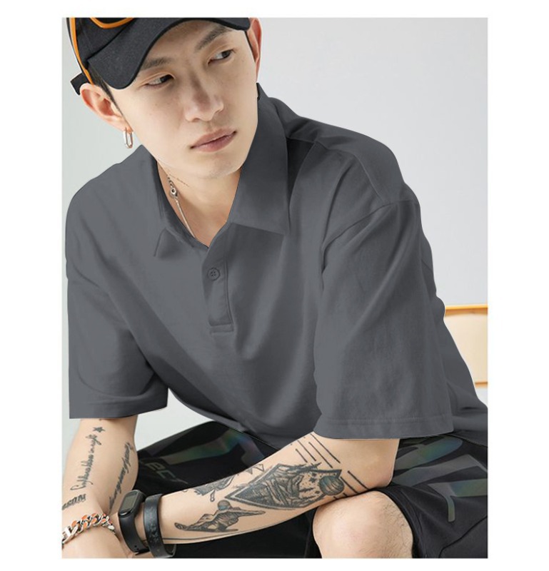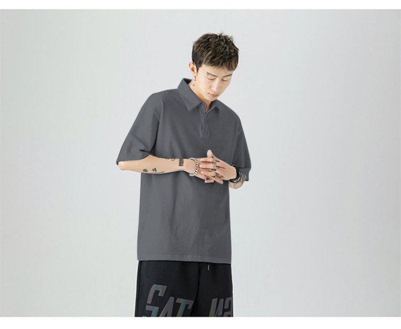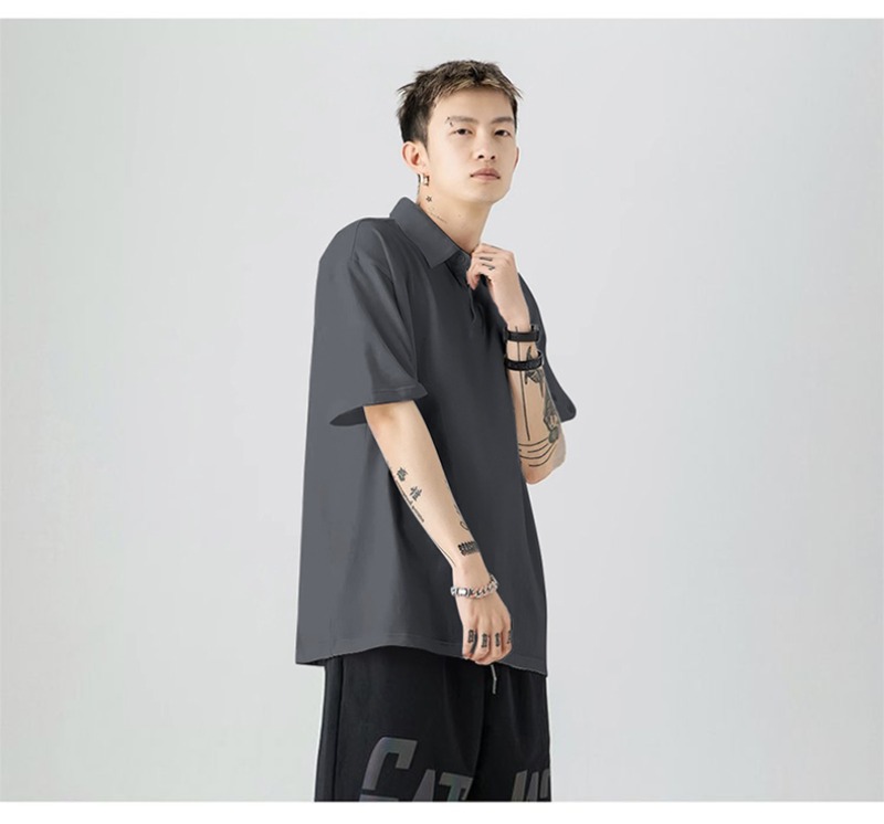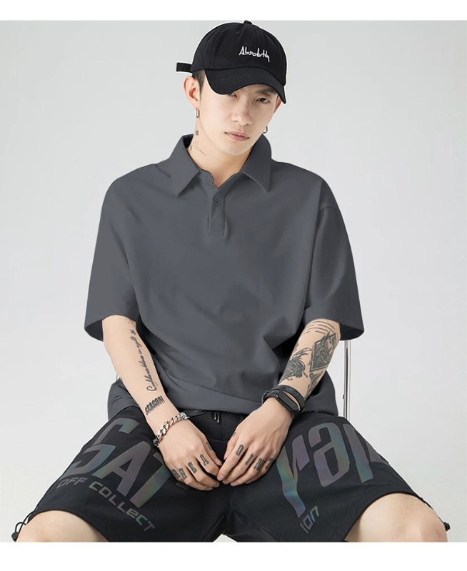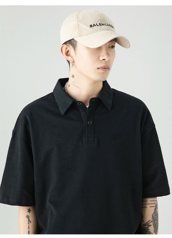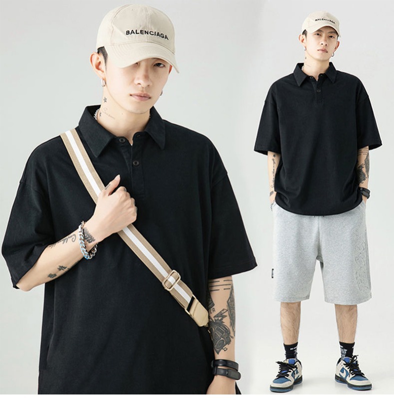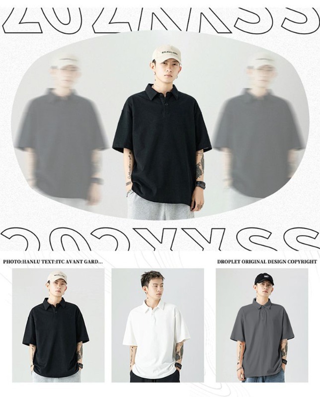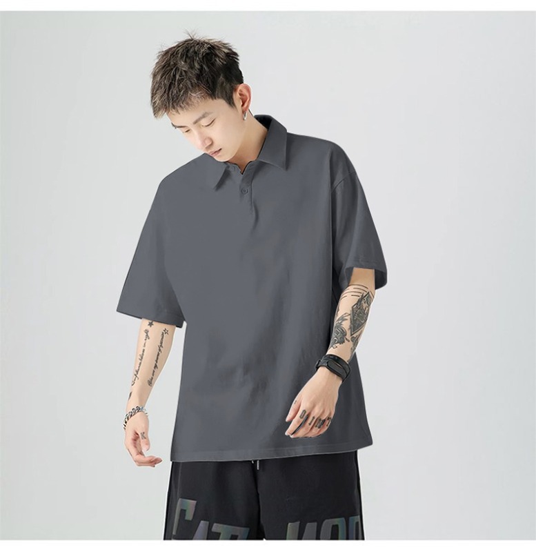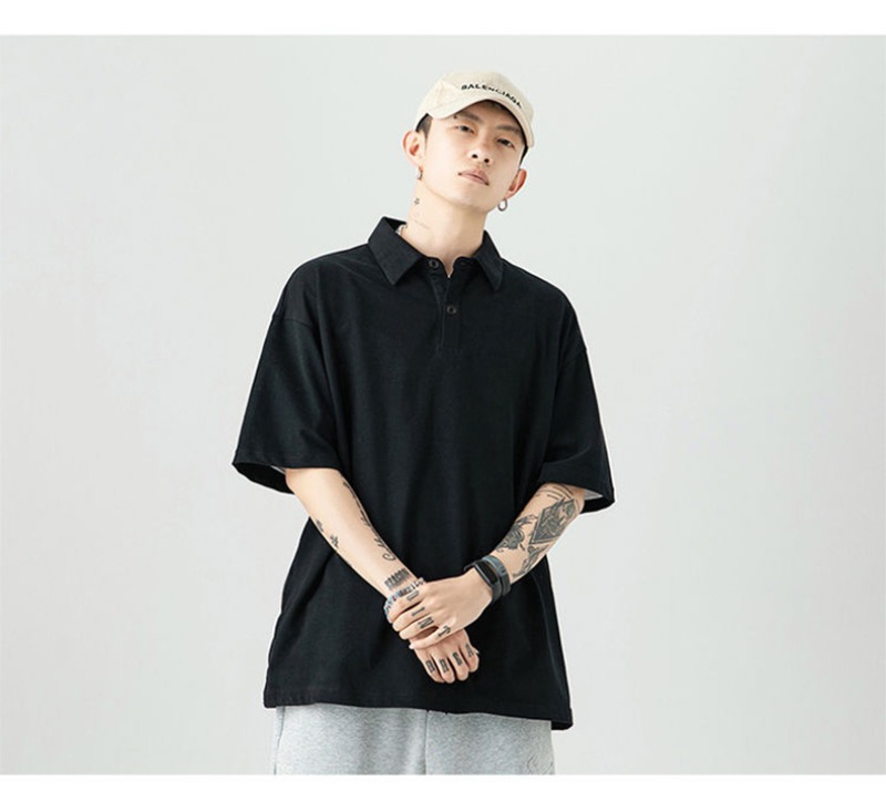 여름 폴로 셔츠 남성용 240gtc 코튼 루즈 솔리드 컬러 옷깃 반팔 폴로 셔츠 화이트 스웨터스토어 가기