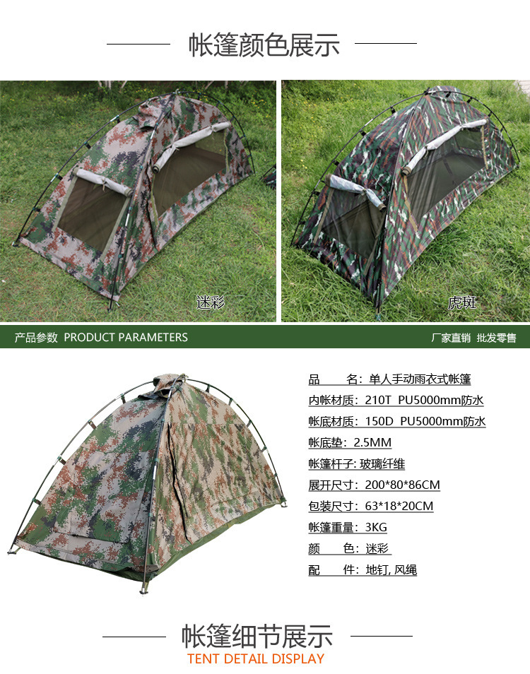 단일 비옷 텐트 다기능 비옷 텐트 야외 캠핑 방풍 등산 텐트 공장 스트레이트 헤어