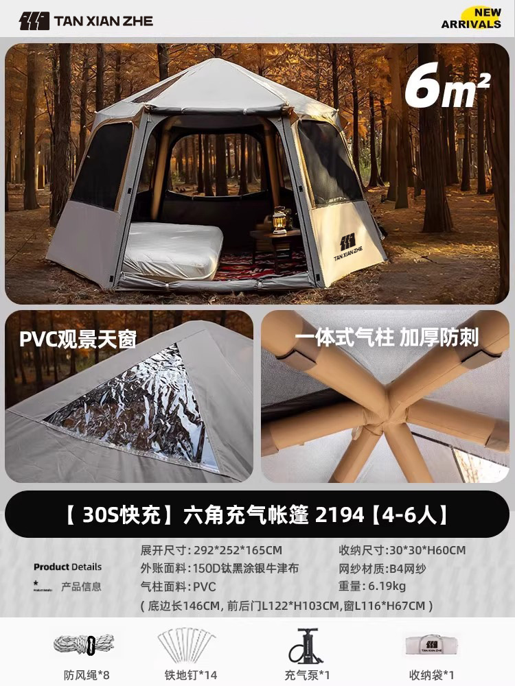 익스플로러 빠른 오픈 육각형 풍선 텐트 야외 캠핑 야간 캠핑 휴대용 접이식 방비 선 스크린 신제품스토어 가기