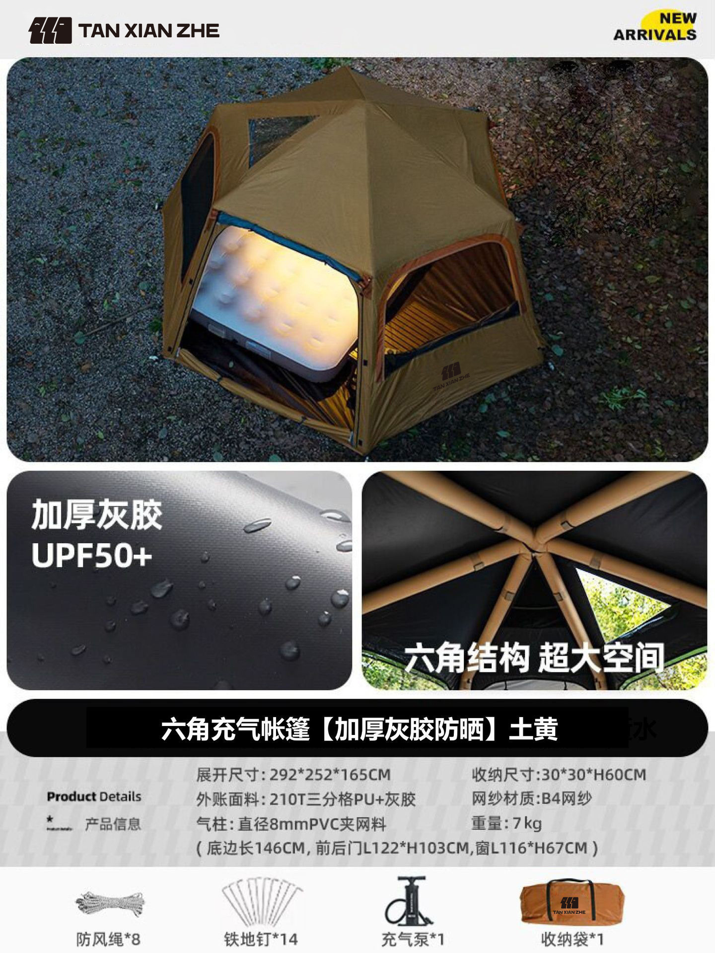 • [회색 접착제 코팅 자외선 차단 업그레이드] 황토색 육각형 풍선 텐트 [2194D]