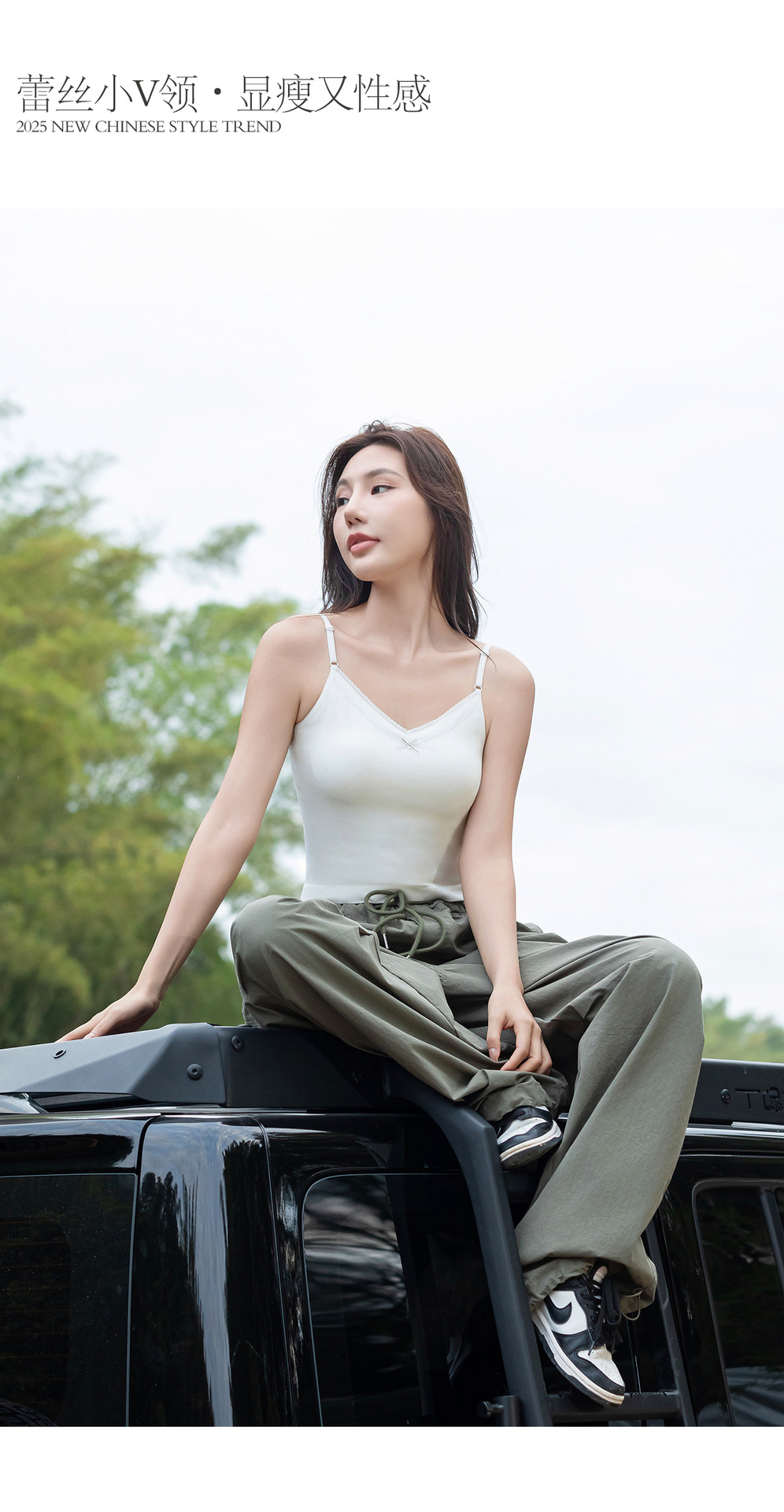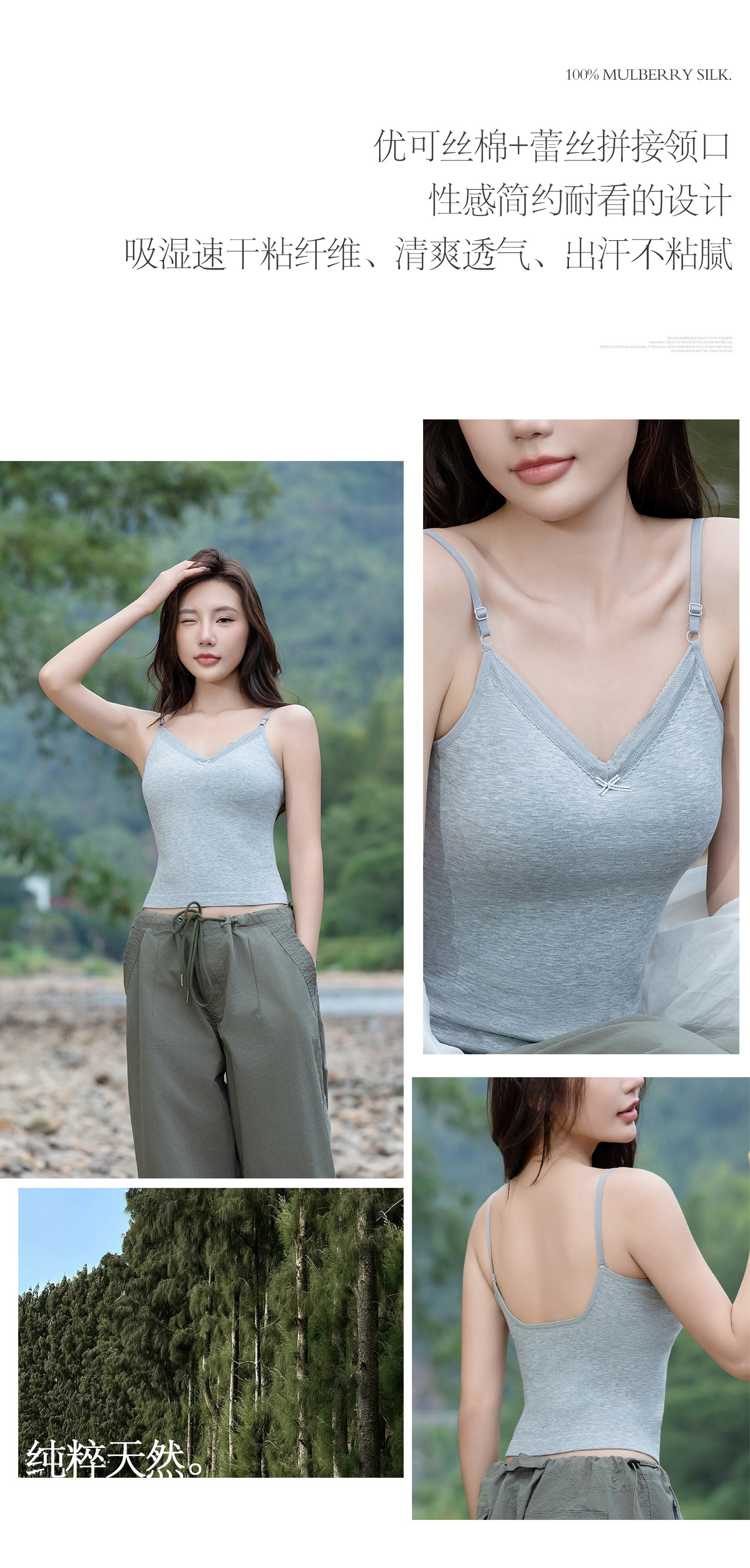벌거 벗은 암모니아 모달 롱 레이스 카미 솔 원피스 컵 고정 컵 섹시한 편안한 U-백 조절 아름다운 뒤