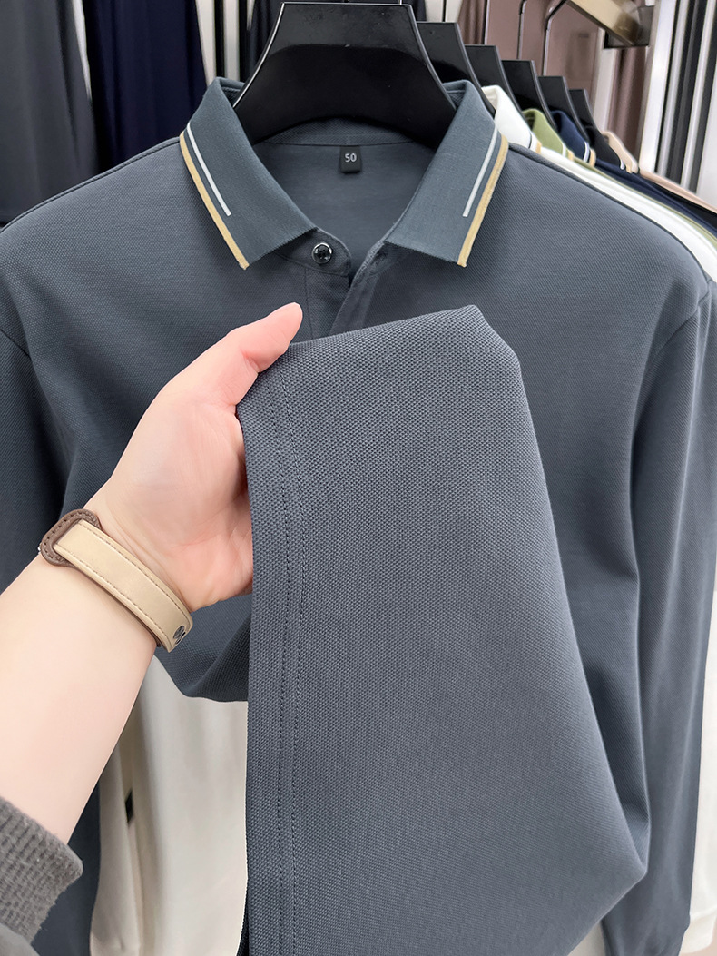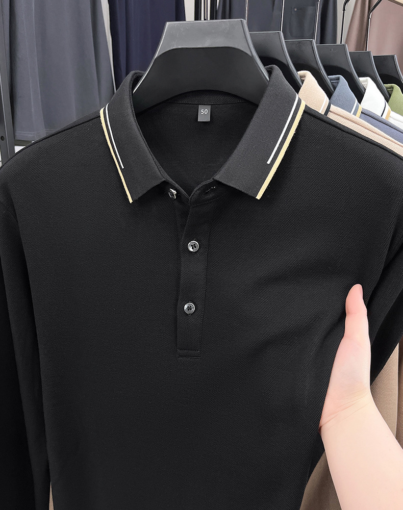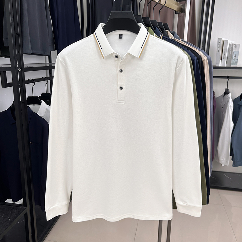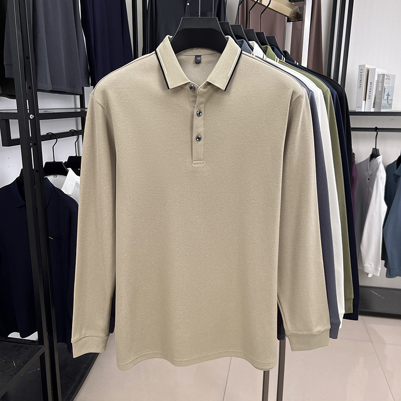 국경을 넘는 봄과 가을 새로운 남성 티셔츠 긴 소매 코튼 옷깃 느슨한 패션 남성용 피부 친화적 인 폴로 셔츠