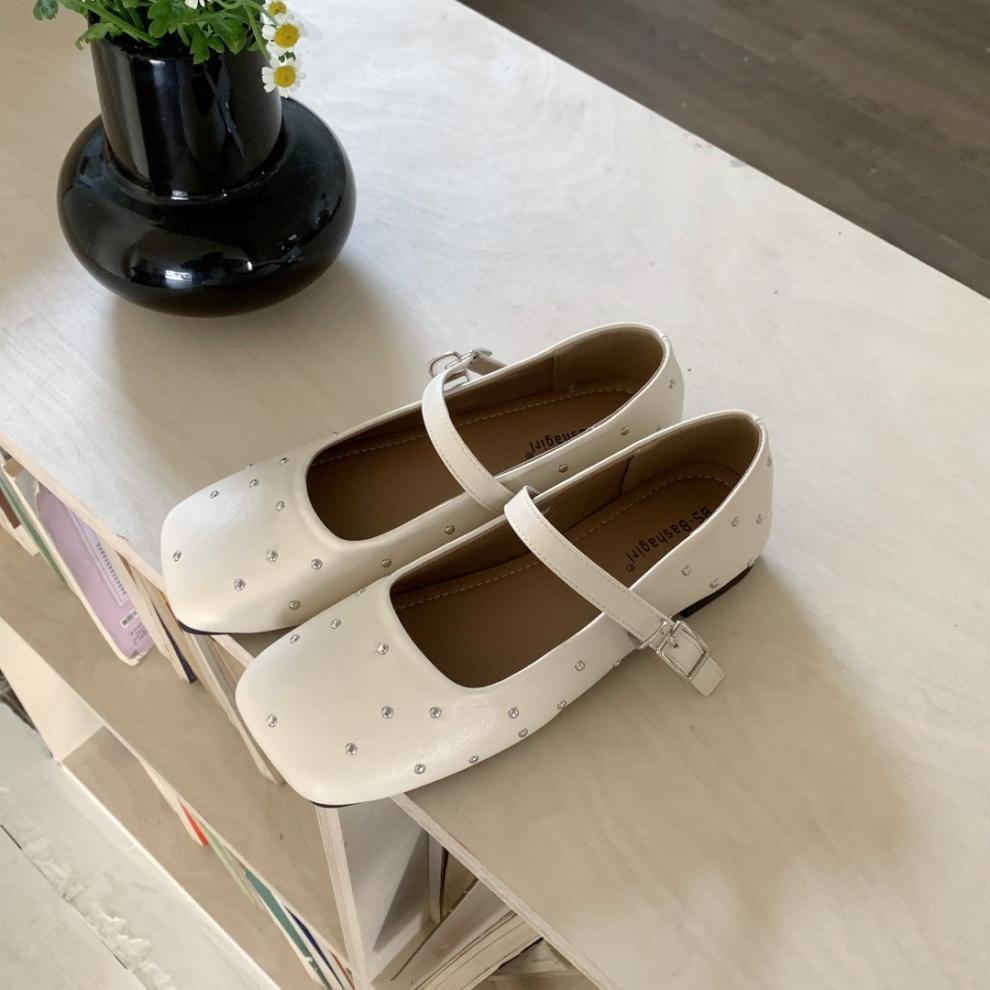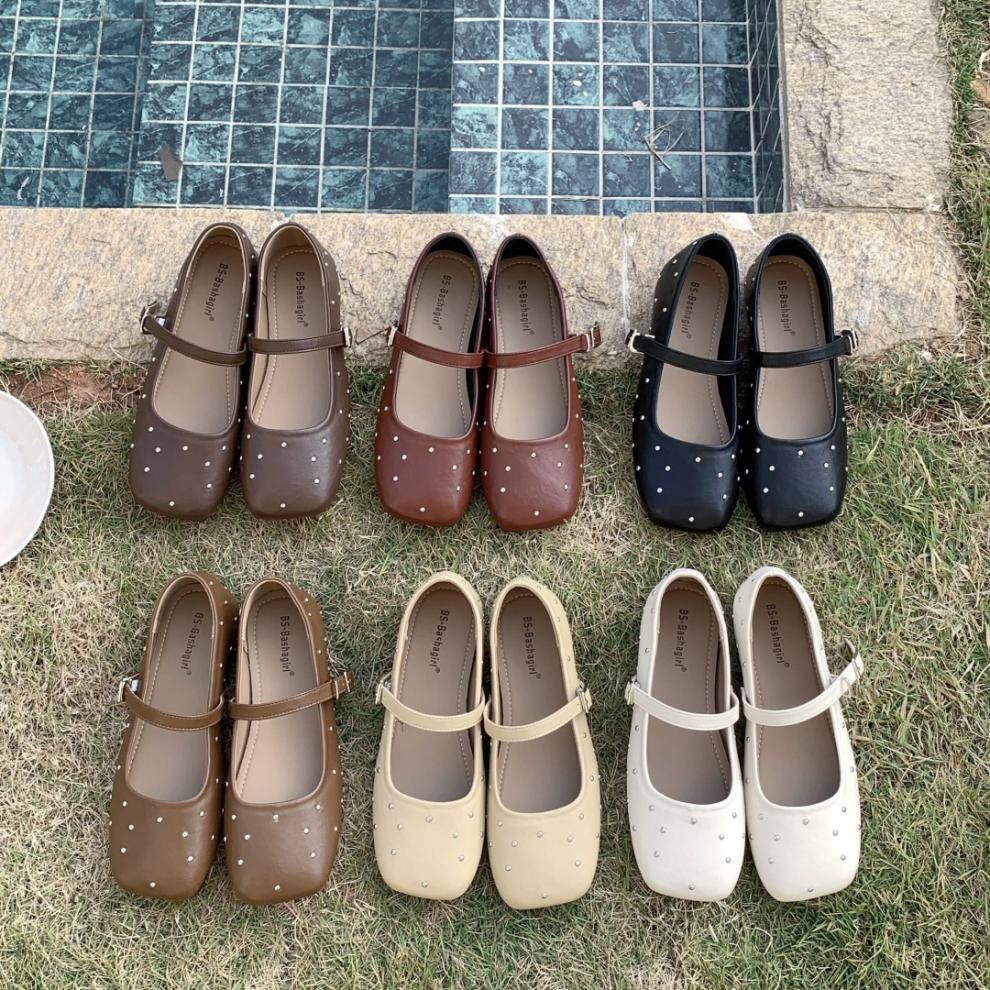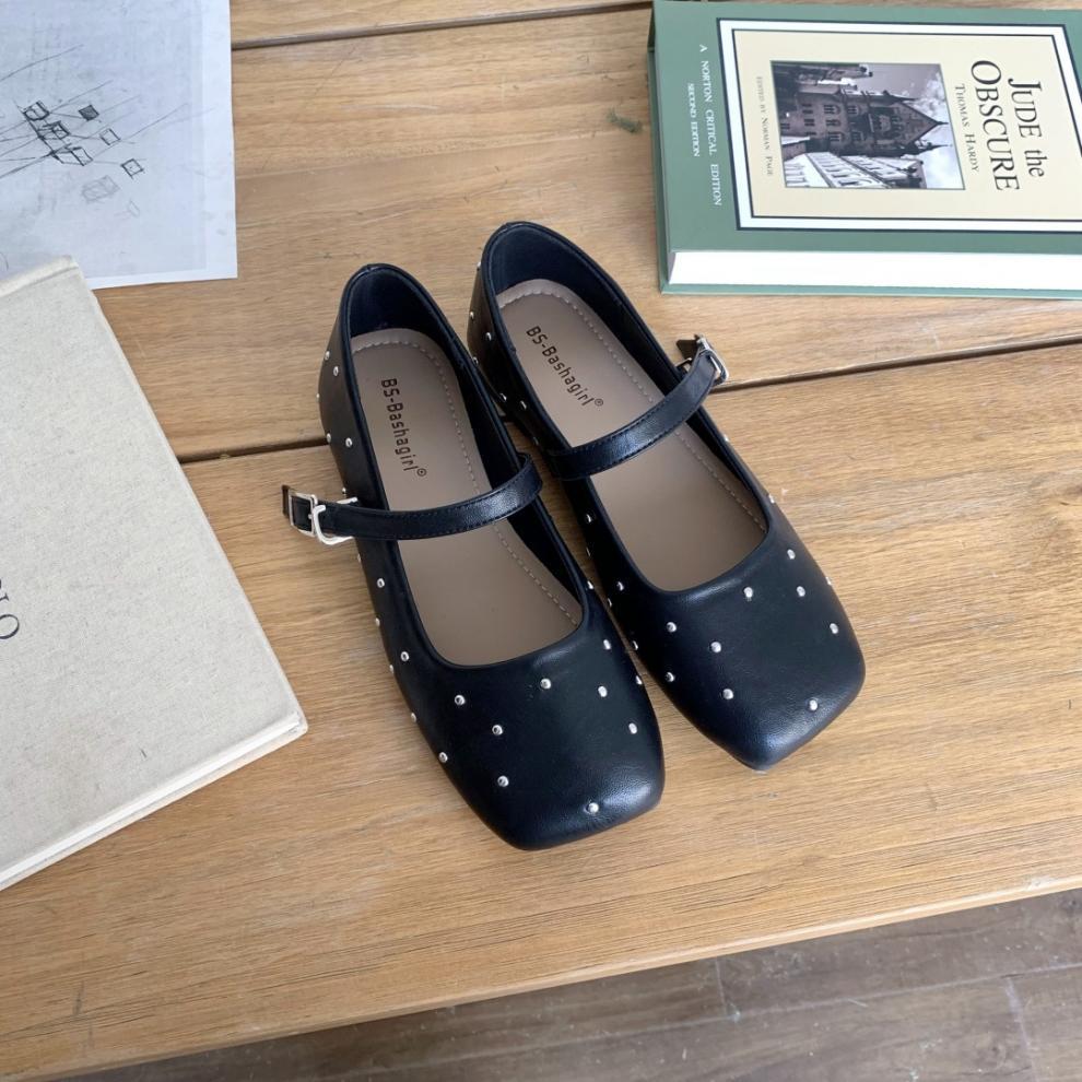 빈티지 디자인 센스 리벳 스퀘어 헤드 한 단어 벨트 메리 제인 신발 얕은 입 올매치 소프트 밑창 싱글 레이어 신발스토어 가기