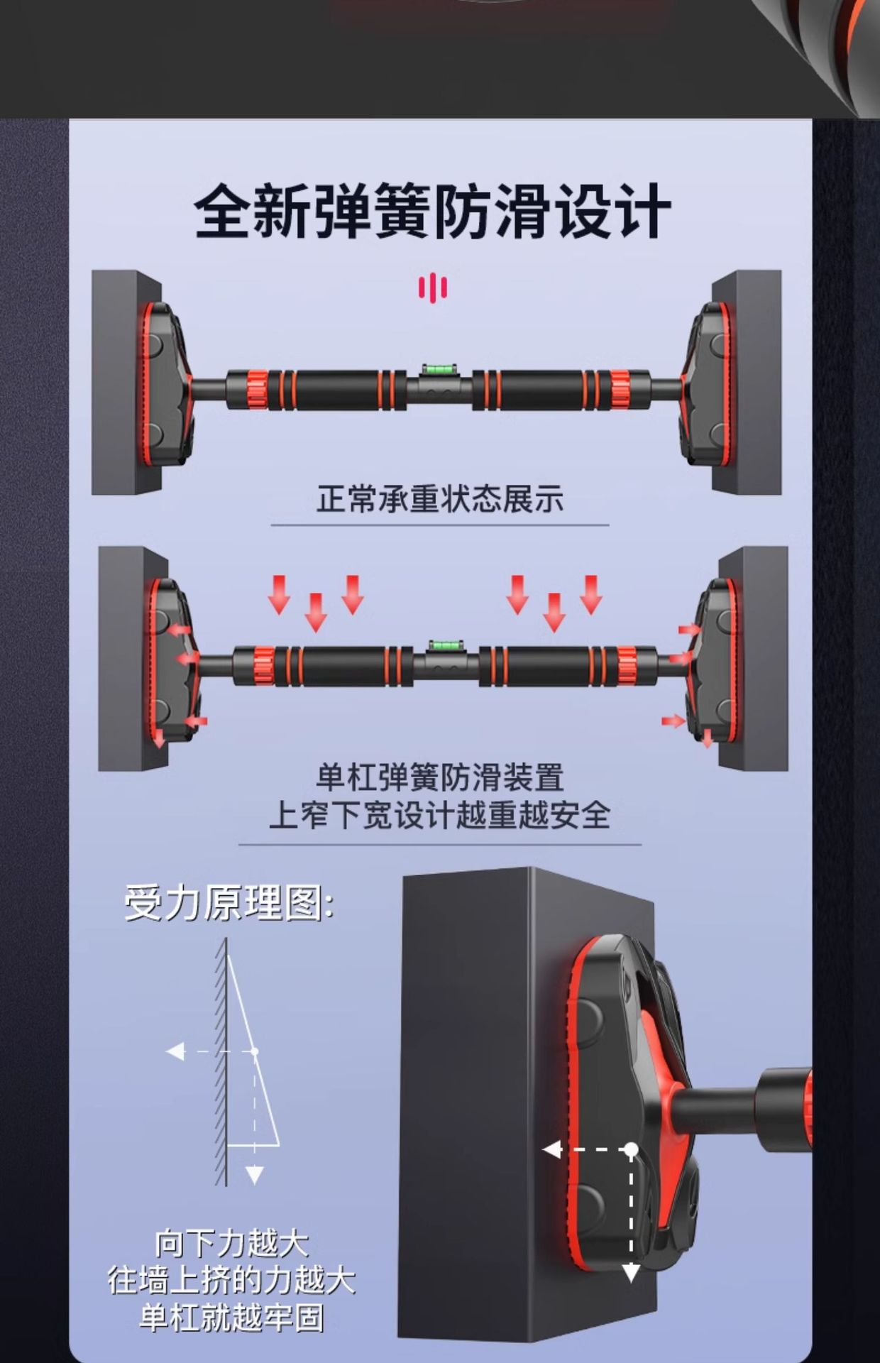 • [업그레이드된 이중 스프링 미끄럼 방지 모델 + 레벨 + 행잉 링 + 스윙] 96-135cm/두꺼워진 튜브 벽/강화된 내하중