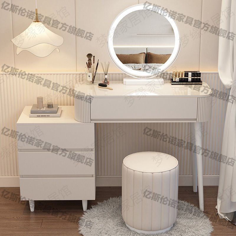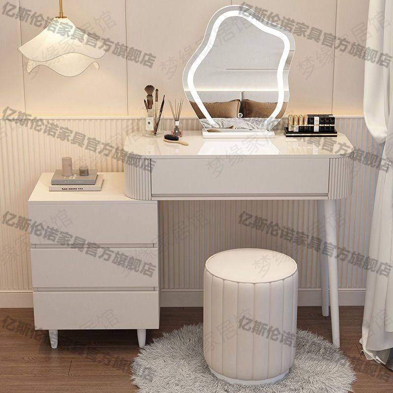 크림 스타일 드레싱 테이블 현대 간단한 저장 캐비닛 침대 테이블 드레싱 테이블 통합 데스크 망원경 화장품 테이블 2024스토어 가기