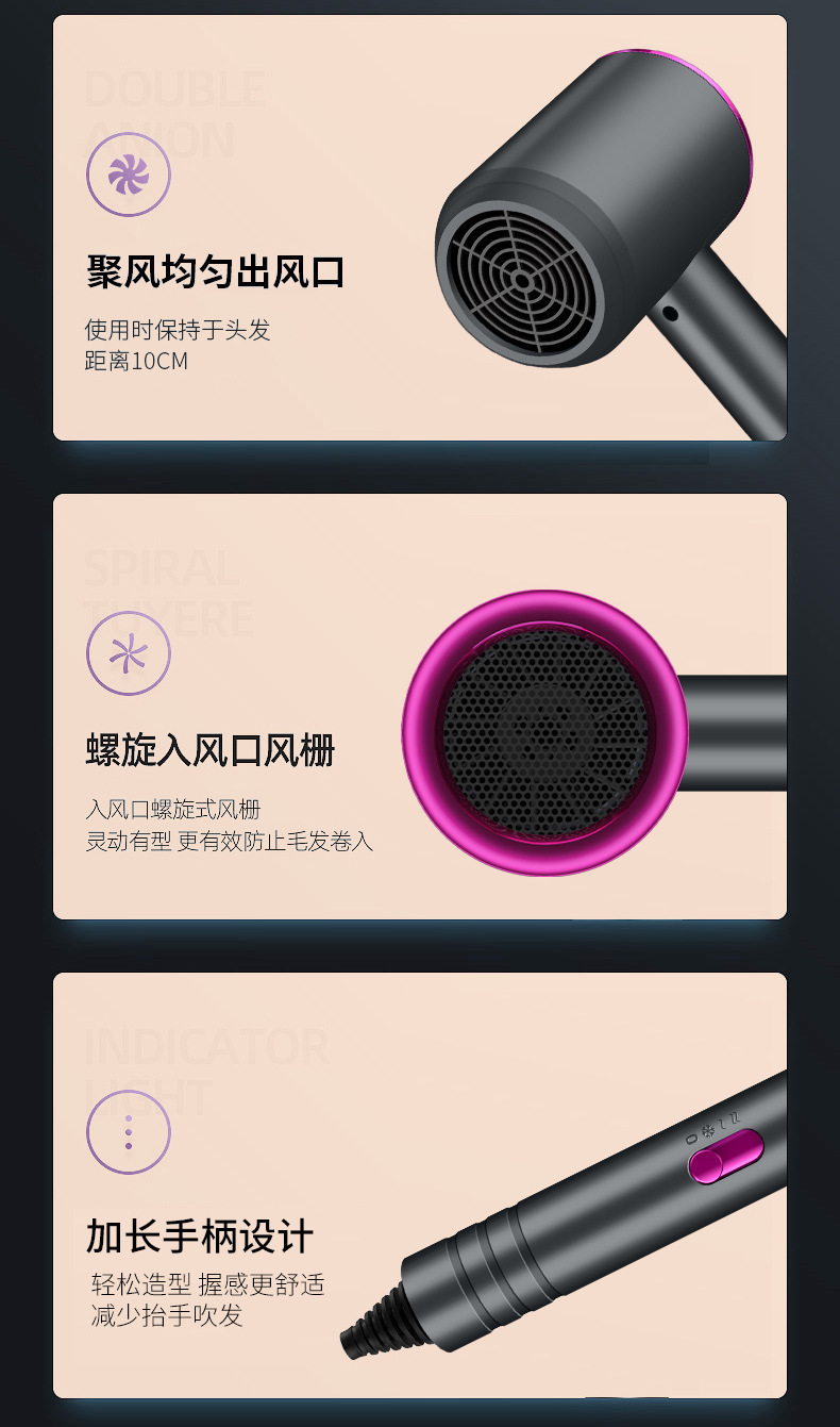 헤어 드라이어 가정용 고출력 네거티브 이온 음소거 뜨겁고 차가운 인터넷 레드 헤어 드라이어 헤어 케어 학생 기숙사 헤어 블로우