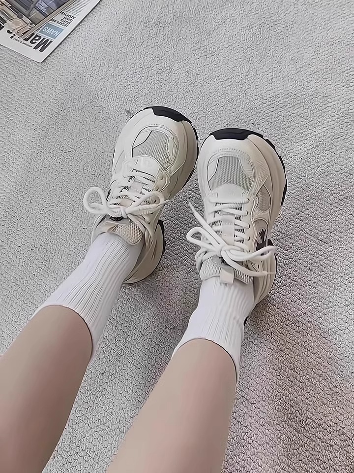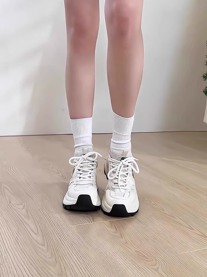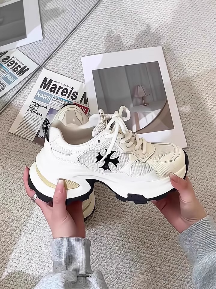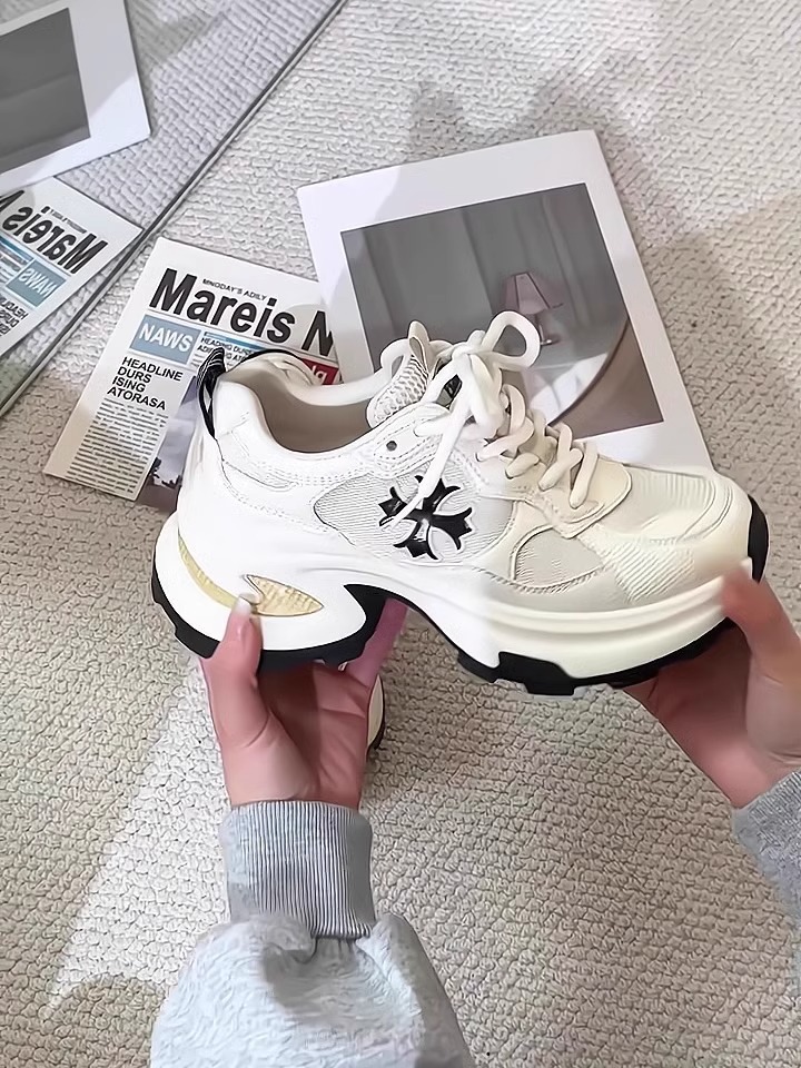 봄 2025 한국식 다용도 높이 증가 7.5cm 크로스 꽃 두꺼운 밑창 캐주얼 운동화 여성 아버지 신발 운동화스토어 가기