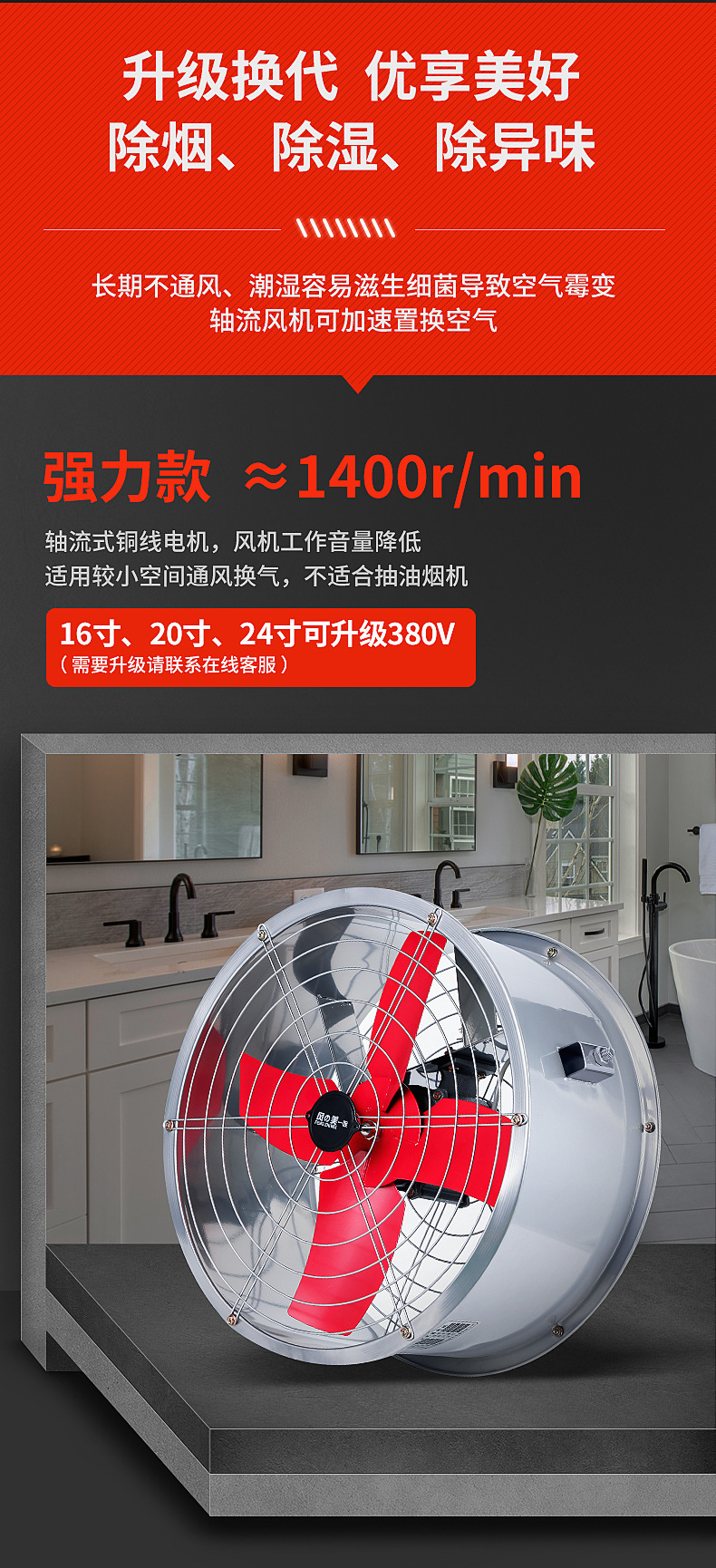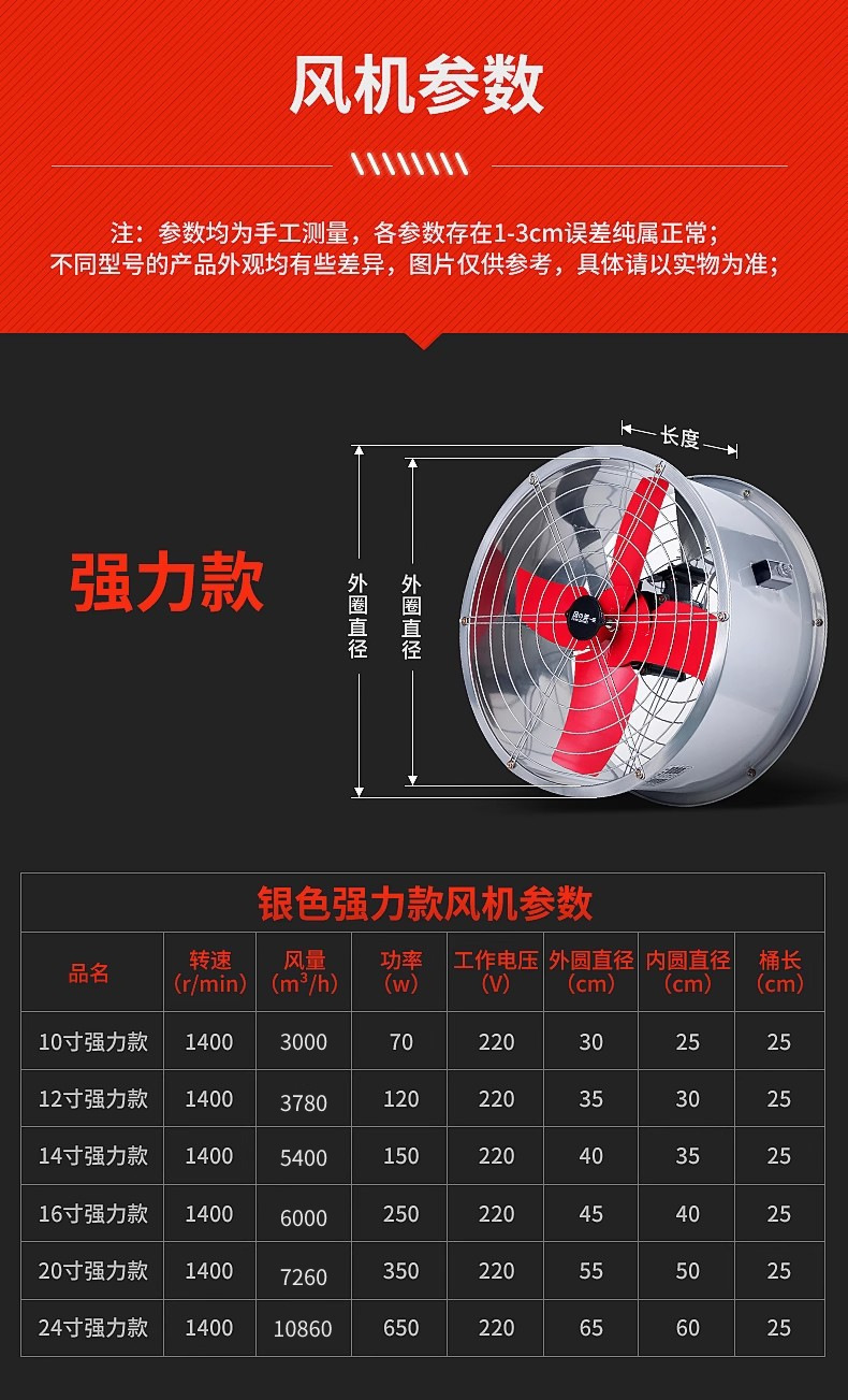 축 흐름 배기 팬, 배기 팬, 강력한 산업 및 상업용 고출력 220v 환기 팬, 주방 배기 가스 환기 장치스토어 가기