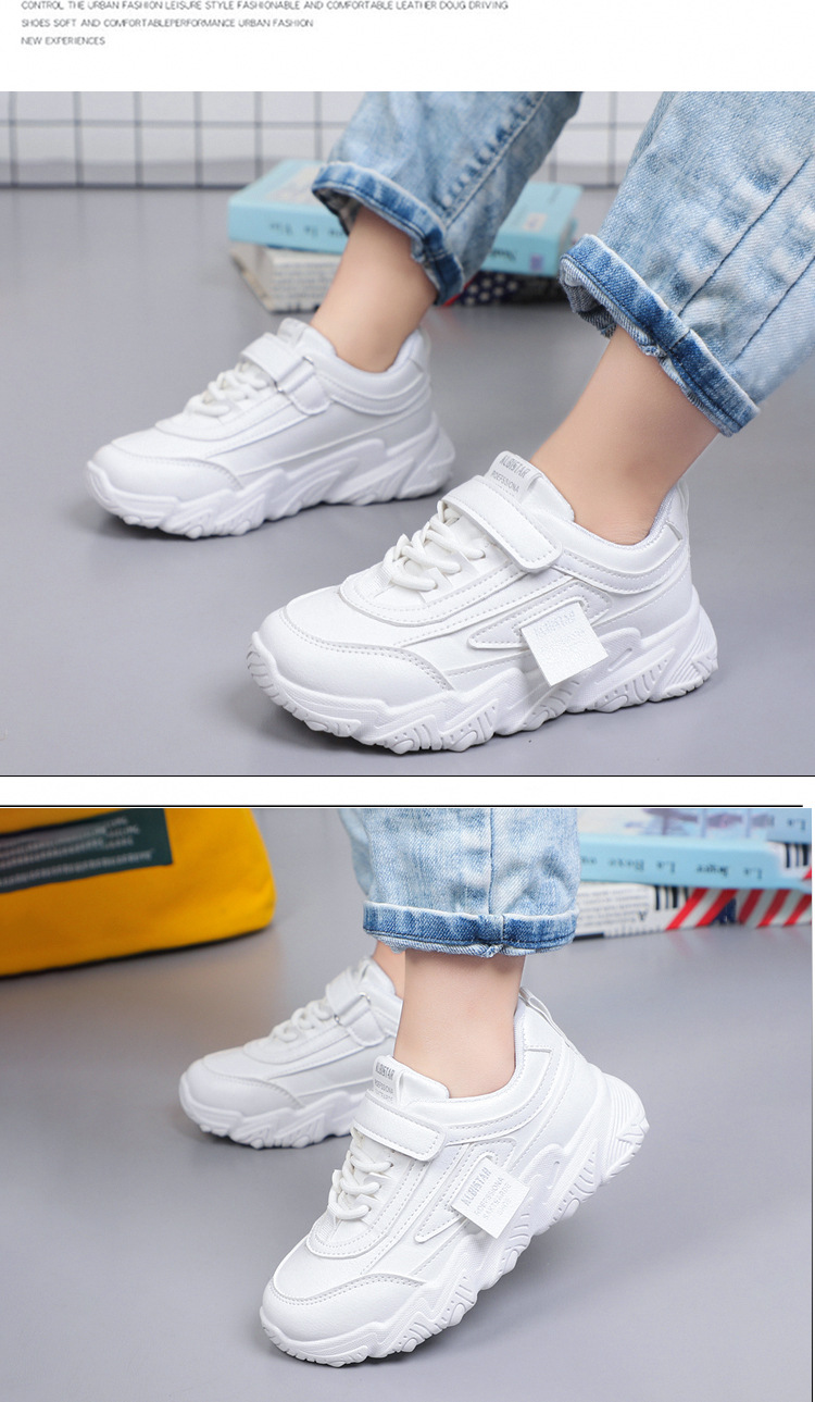 어린이 운동화 가죽 2023 봄 새로운 패션 중 큰 어린이 캐주얼 어린이 신발 여아 러닝 슈즈 보이즈 화이트 슈즈