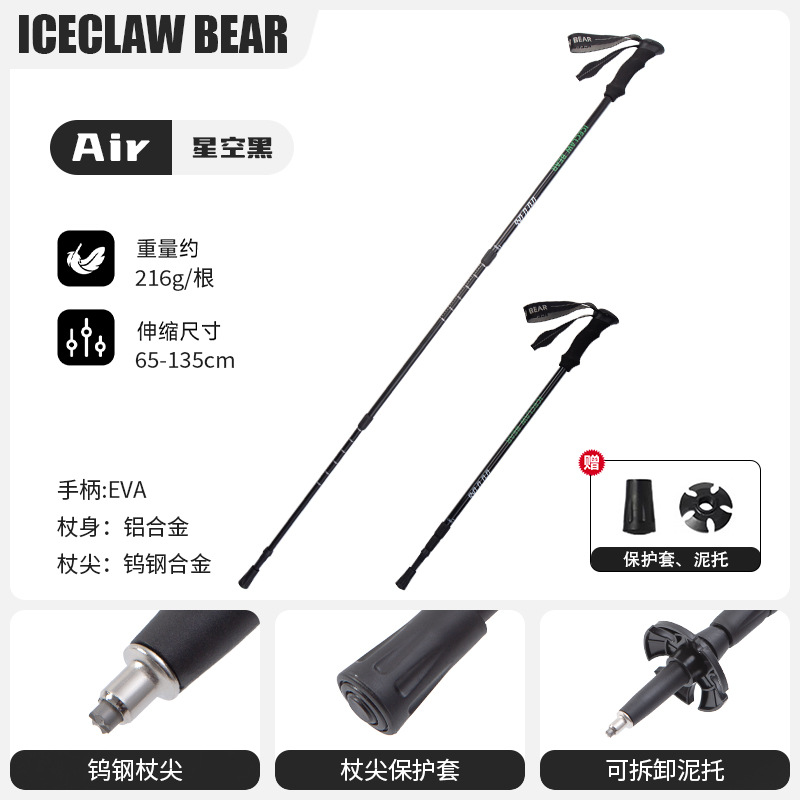 공장 직접 공급 야외 전문 등반 스틱 울트라 라이트 망원경 등산 하이킹 접이식 미끄럼 방지 스틱 알루미늄 합금