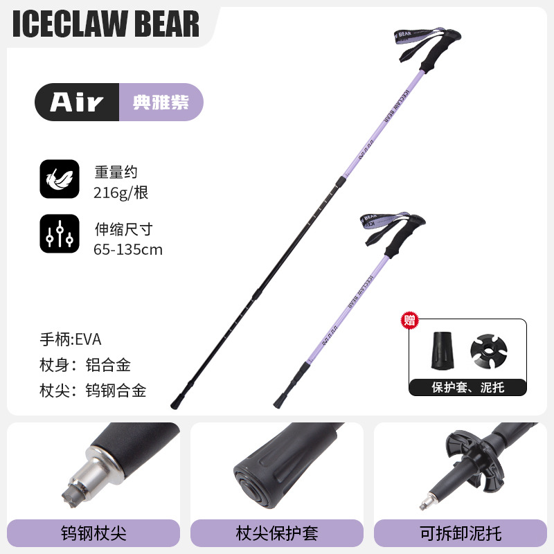 공장 직접 공급 야외 전문 등반 스틱 울트라 라이트 망원경 등산 하이킹 접이식 미끄럼 방지 스틱 알루미늄 합금스토어 가기