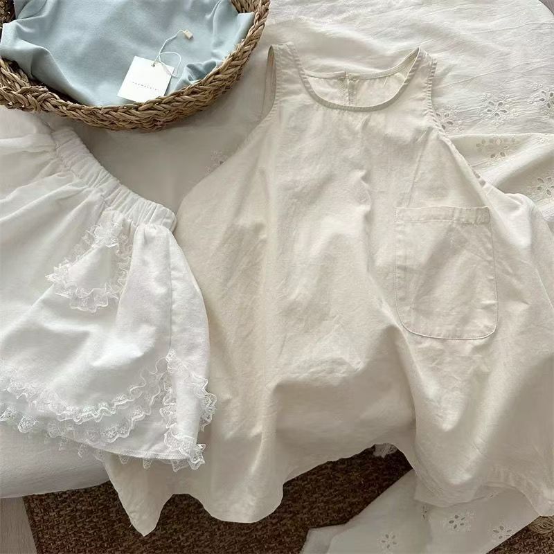 소녀 원피스 세트 봄과 가을 여름 새로운 소녀 패션 간단한 단색 Vat 치마 넓은 다리 바지스토어 가기