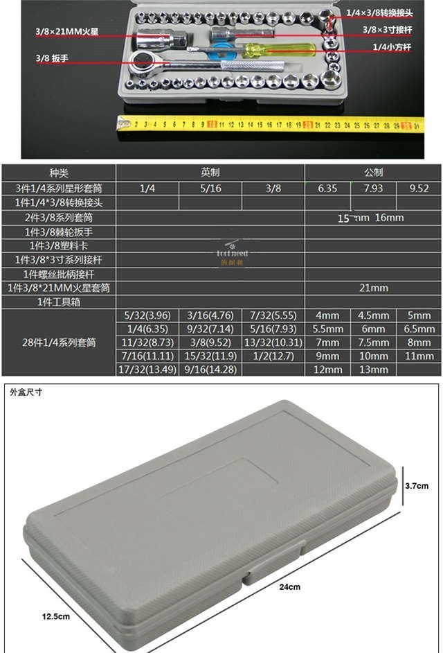 독일 수입 도구 소켓 렌치 래칫 렌치 육각형 조합 세트 자동차 및 오토바이 치수