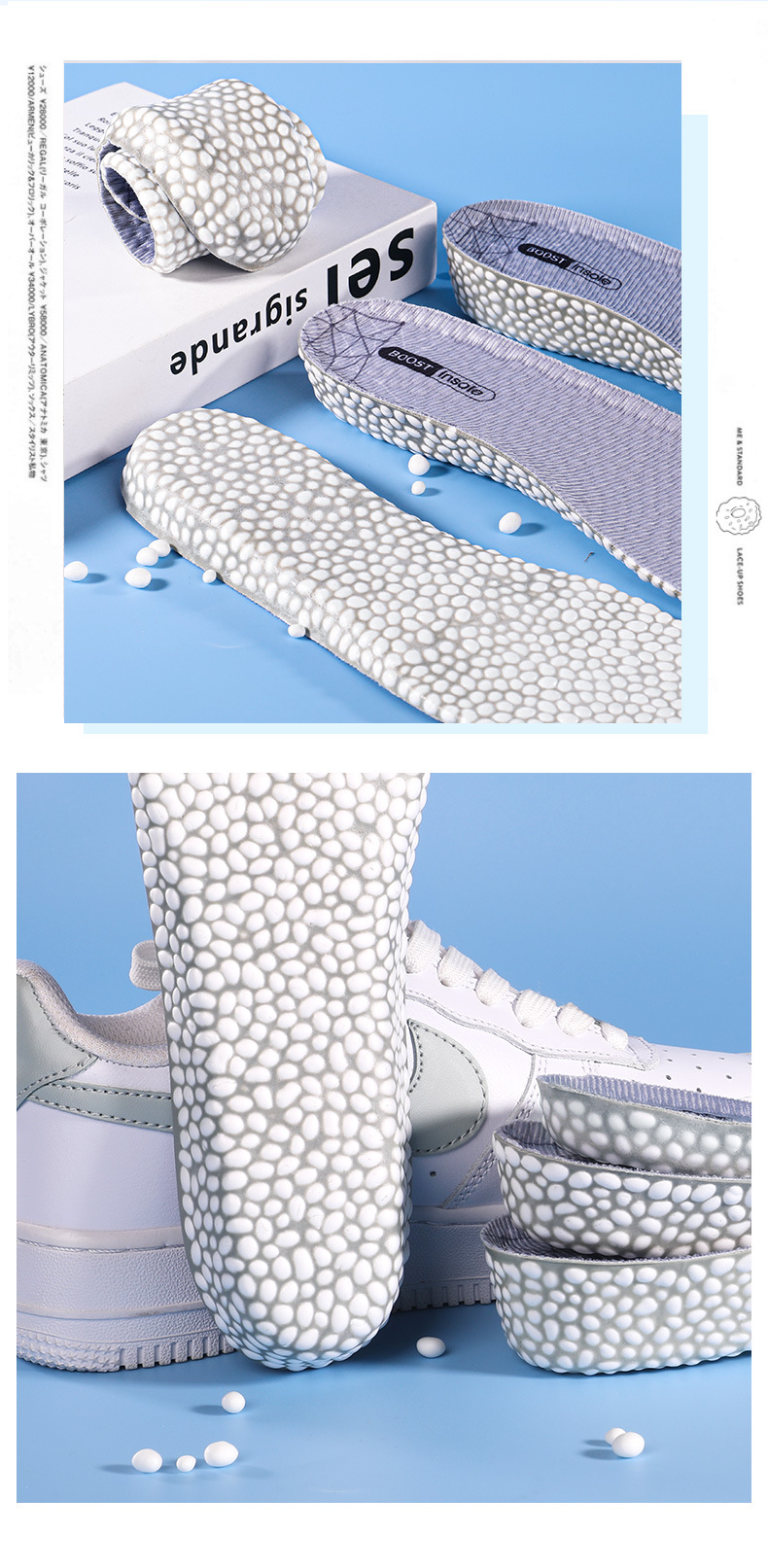 강화 된 안창 남성 부스트 팝콘 높은 탄성 스포츠 충격 흡수 내부 강화 패드 아티팩트 보이지 않는 피곤한 발 여성