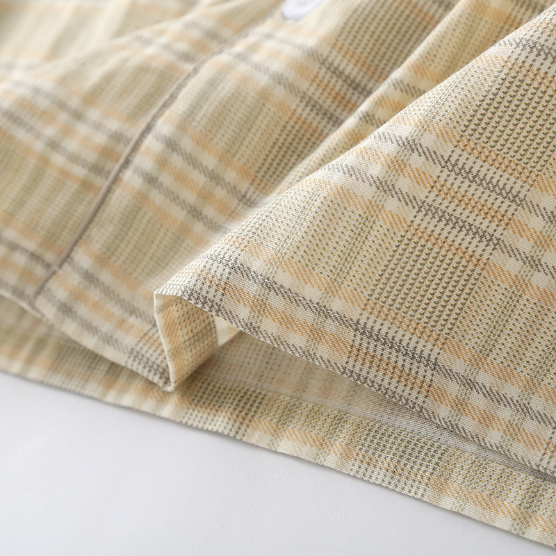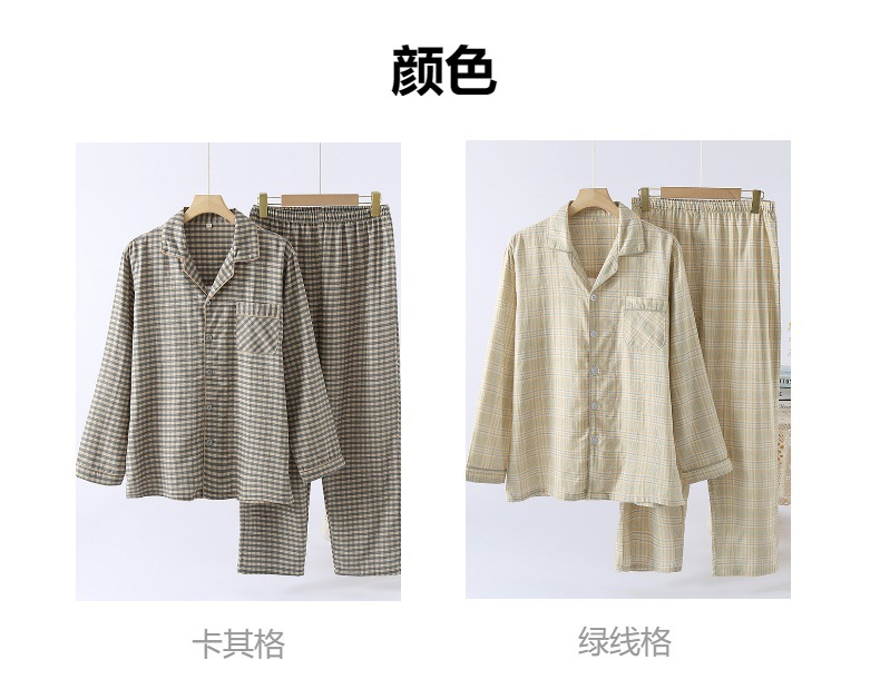 남성용 잠옷 원사 염색 더블 레이어 퓨어 코튼 비 프린트 일본식 격자 무늬 홈 착용 긴팔 바지 봄 여름 가을 얇은 홈 착용스토어 가기
