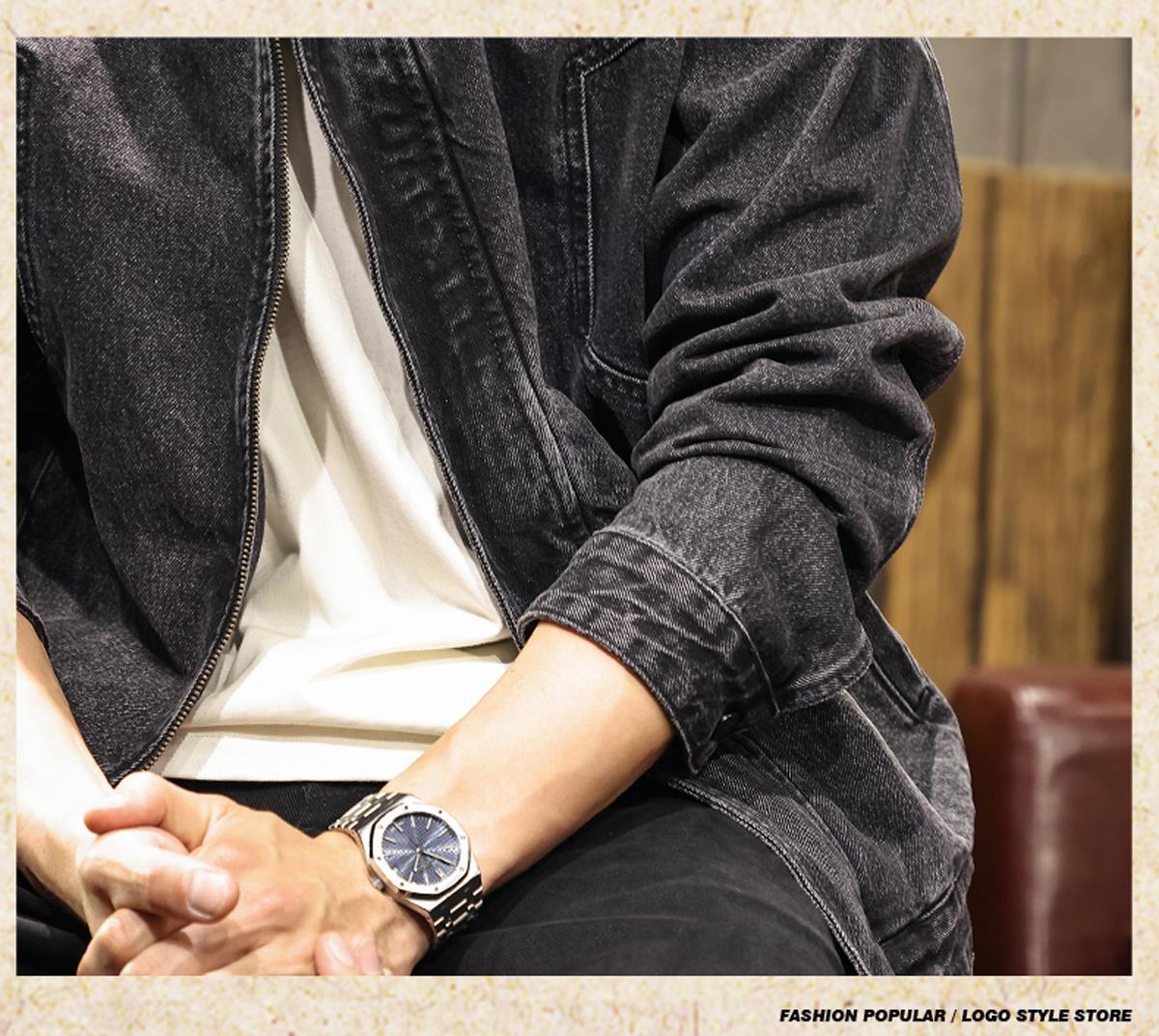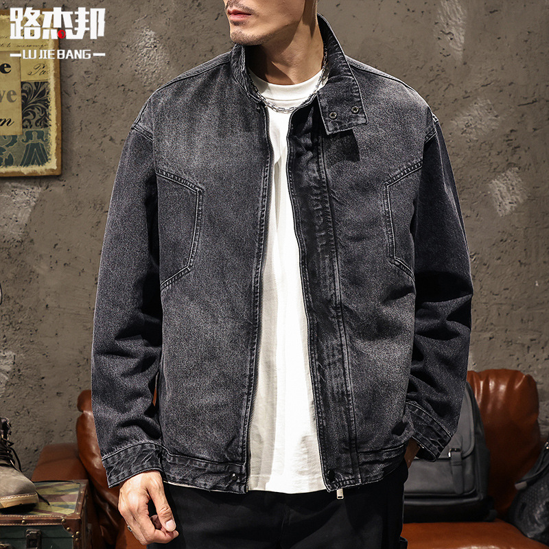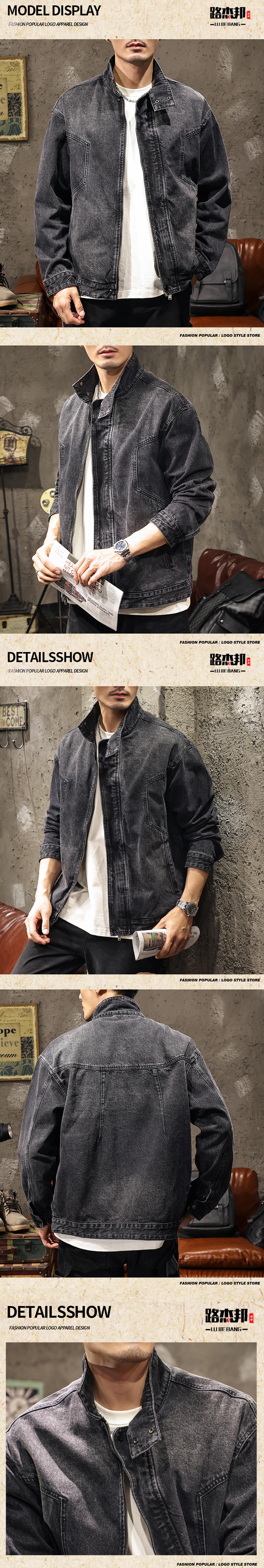수직 칼라 오토바이 툴링 데님 재킷 남자의 봄과 가을 2025 새로운 지퍼 카디건 느슨한 승마 재킷스토어 가기