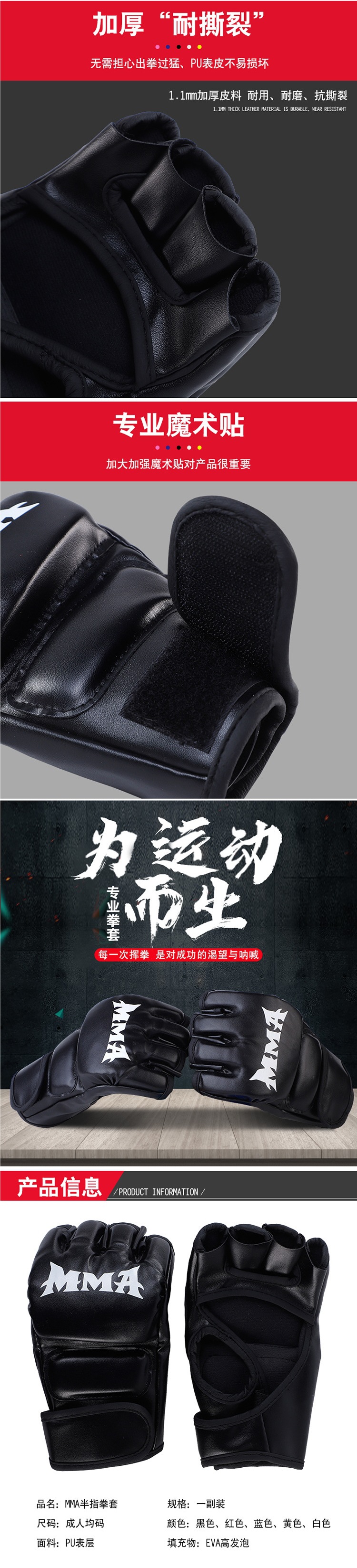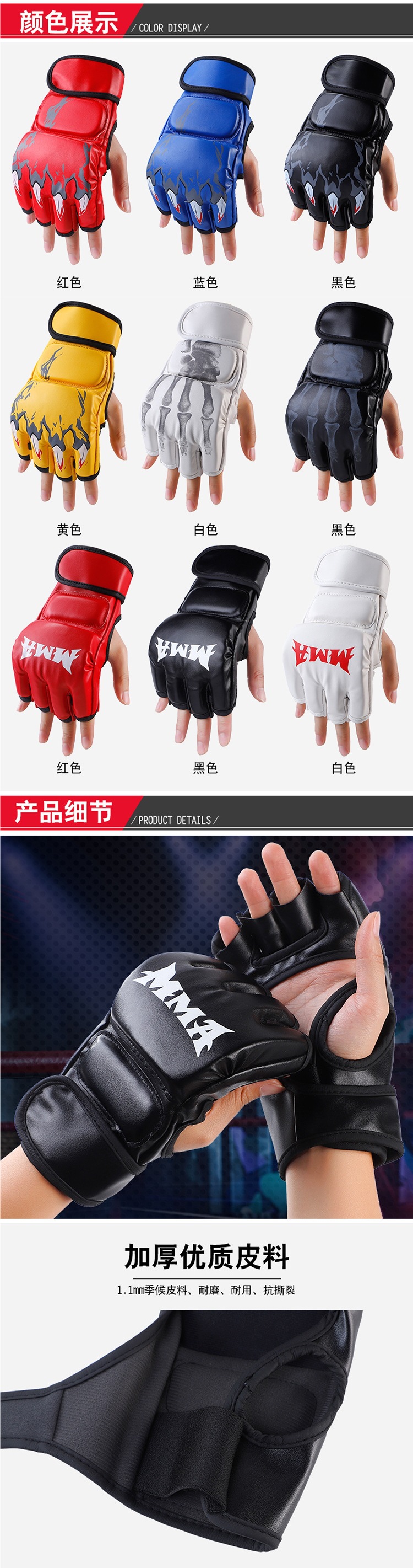 Yuan Yi 권투 장갑 반 손가락 MMA 권투 장갑 UFC 산다 두꺼운 성인 샌드백 샌드백 파이팅 복싱 장갑