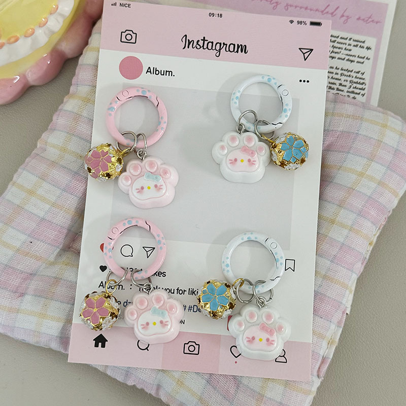 귀여운 만화 KT 고양이 클로 키 체인 컬러 벨 학생 소녀 하트 백 펜던트 여자 친구 커플 선물스토어 가기