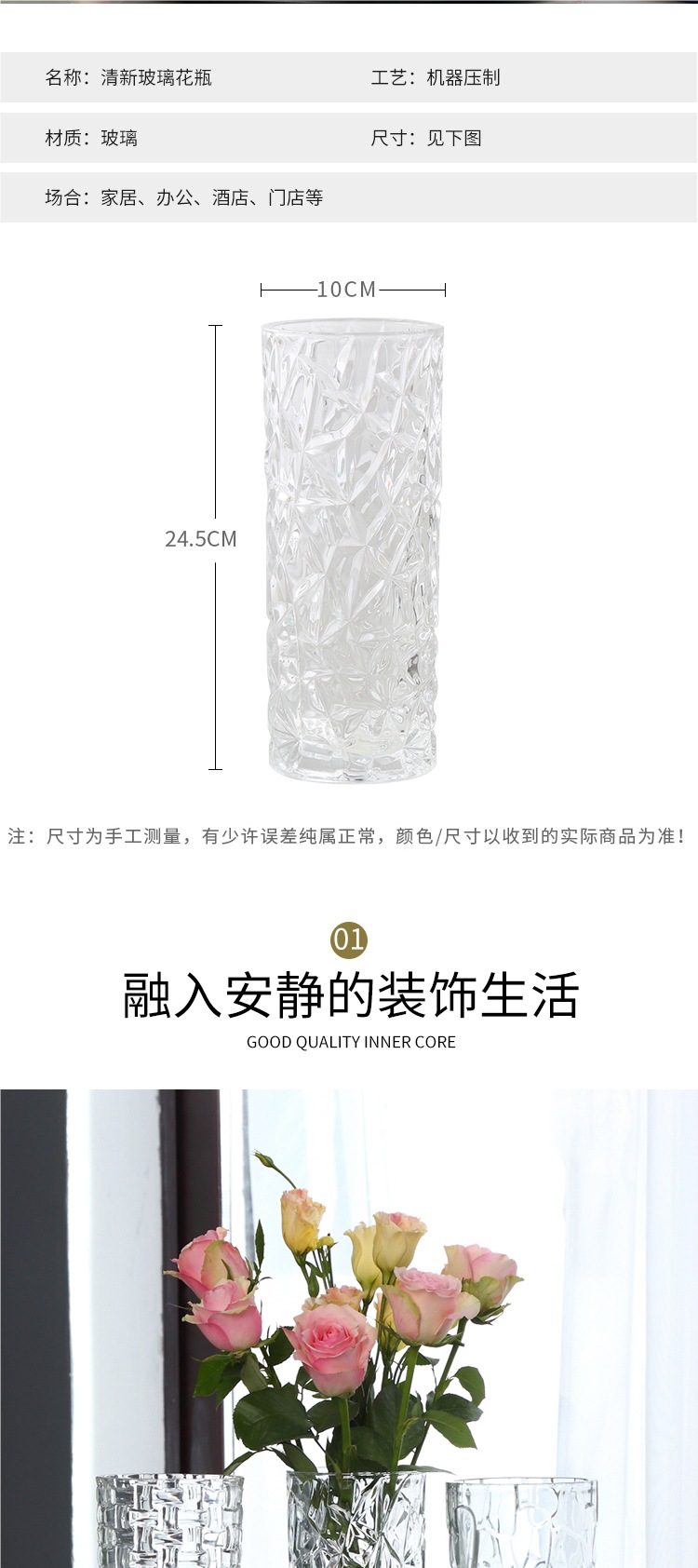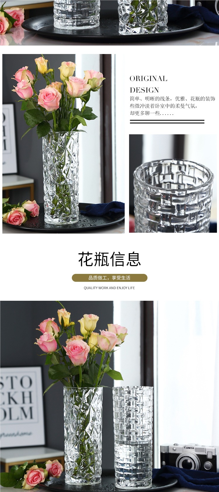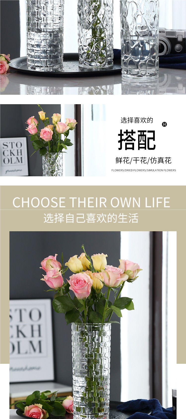 대형 두꺼운 유럽식 유리 꽃병 투명한 수경 대나무 백합 꽃병 거실 장식 꽃병 장식품스토어 가기