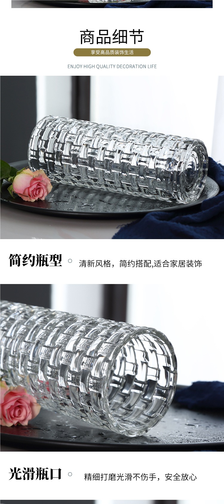 대형 두꺼운 유럽식 유리 꽃병 투명한 수경 대나무 백합 꽃병 거실 장식 꽃병 장식품
