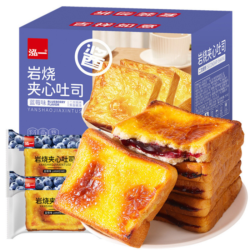 홍이 블루 베리 락 구운 돼지 고기 느슨한 치즈 샌드위치 토스트 빵 통 상자 케이크 아침 식사 음식스토어 가기