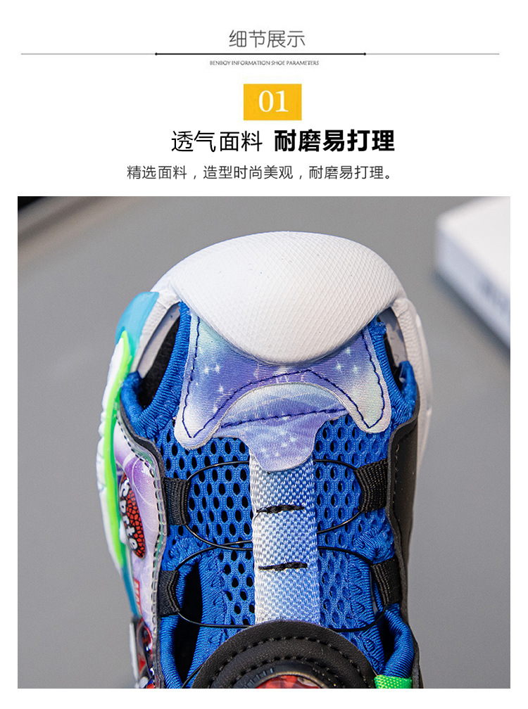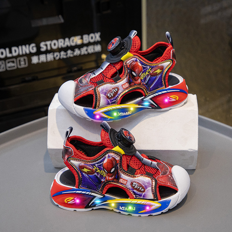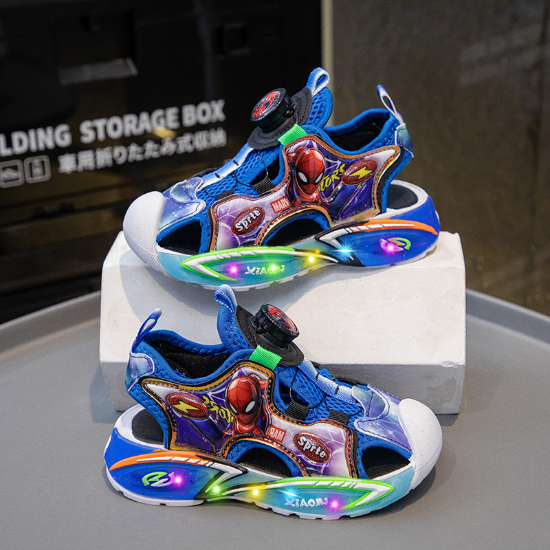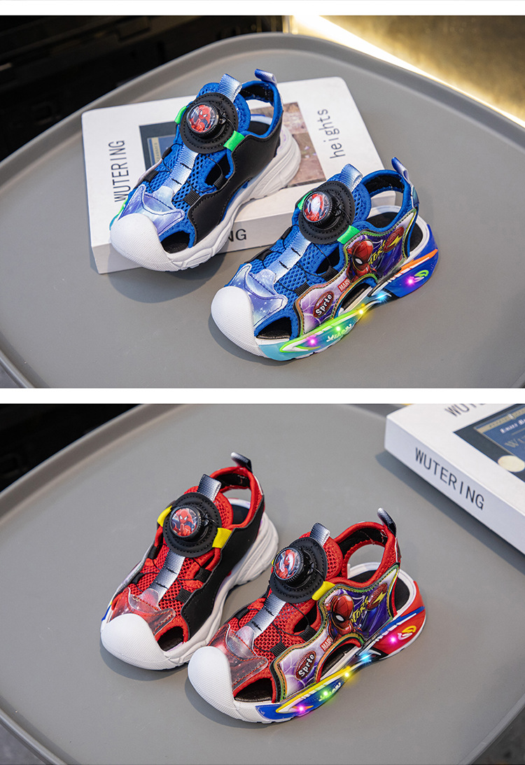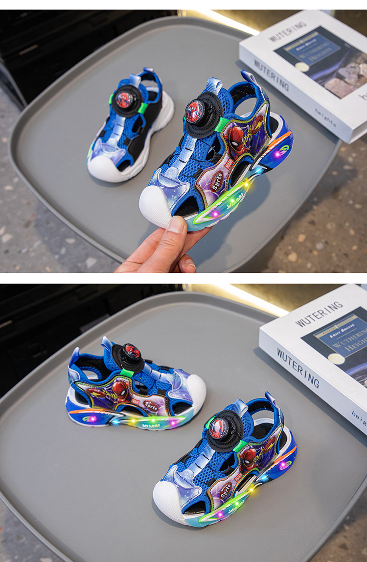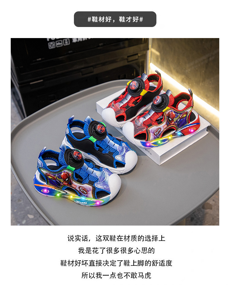 소년 샌들 2025 여름 새로운 메쉬 캐주얼 비치 신발 어린이 힐 스위블 버튼 경량 조명 신발