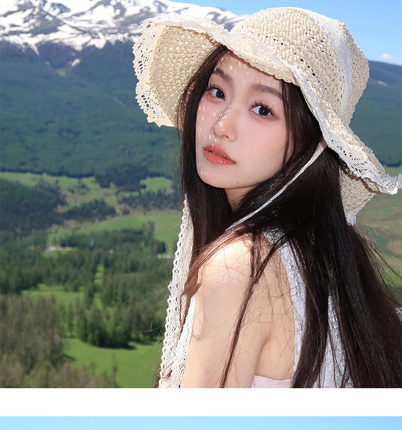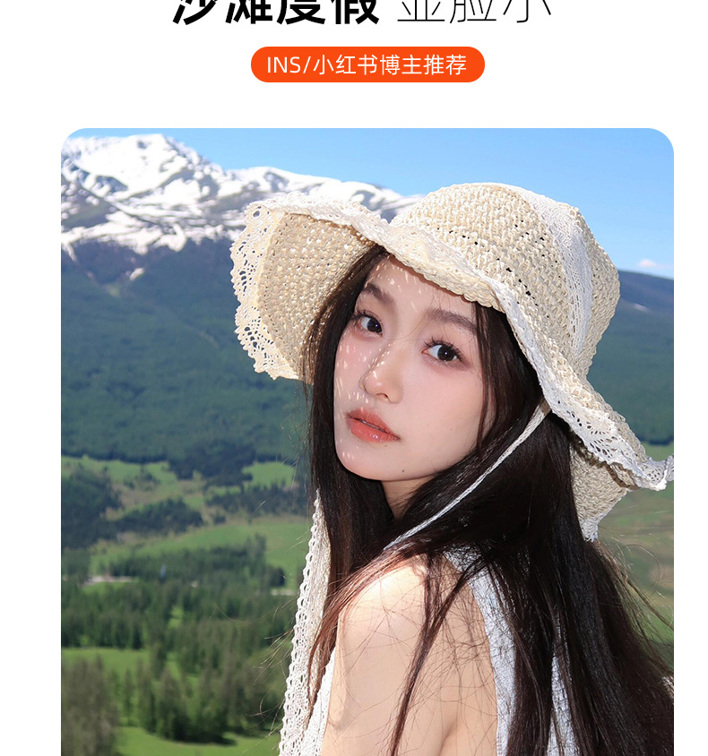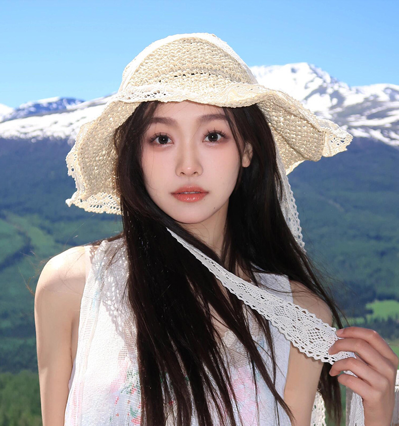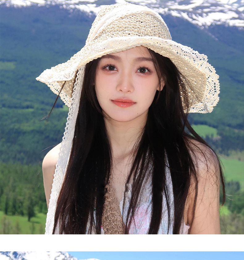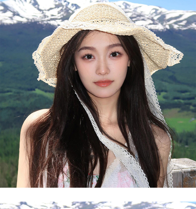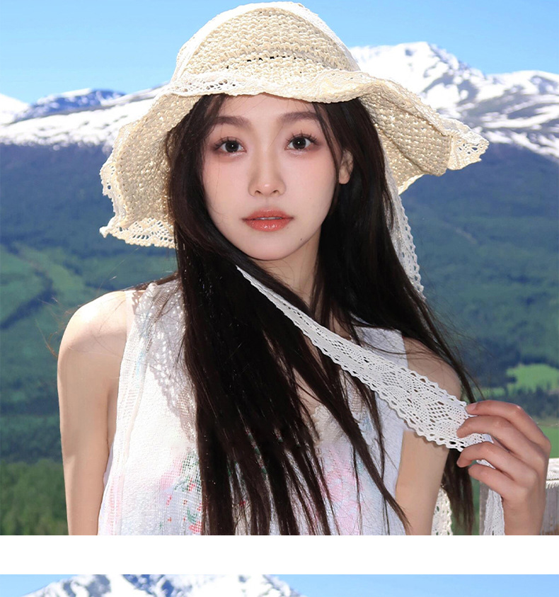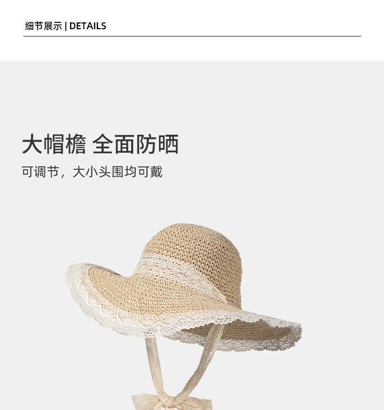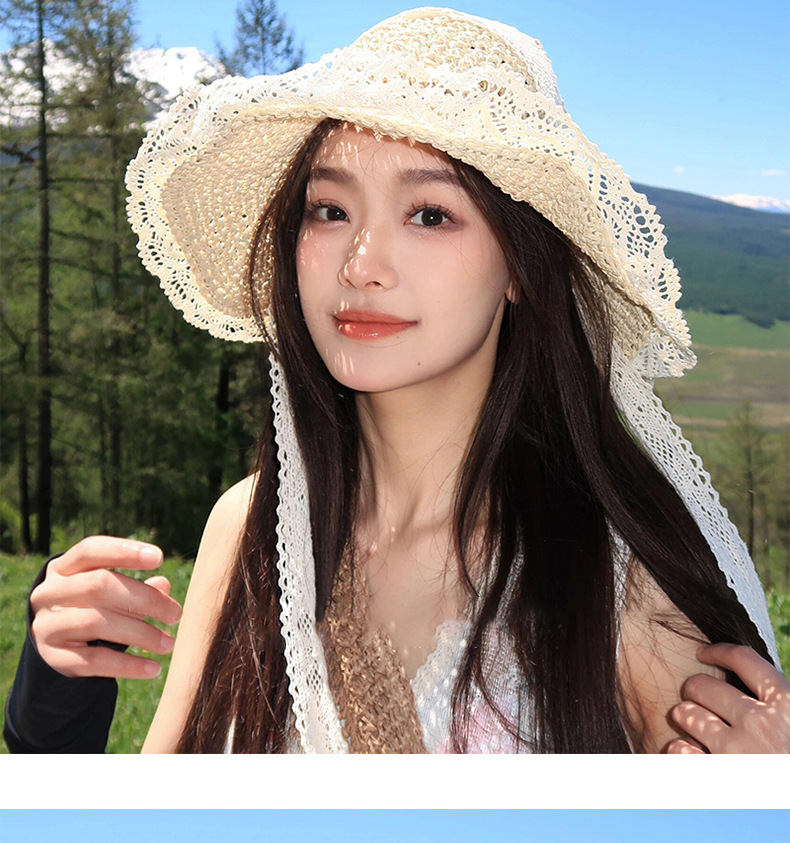 INS 스타일 여름 레이스 리본 넓은 챙 햇빛 가리개 밀짚모자 여성용 2025 신상 해변 휴가용 자외선 차단 모자스토어 가기