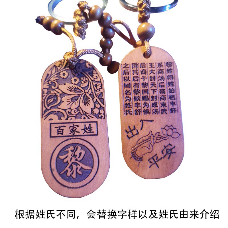 백 가족 이름 복숭아 나무 키 체인 가족 이름 토템 자동차 열쇠 고리 남녀 새로운 교수형 장식품 생일 졸업 선물